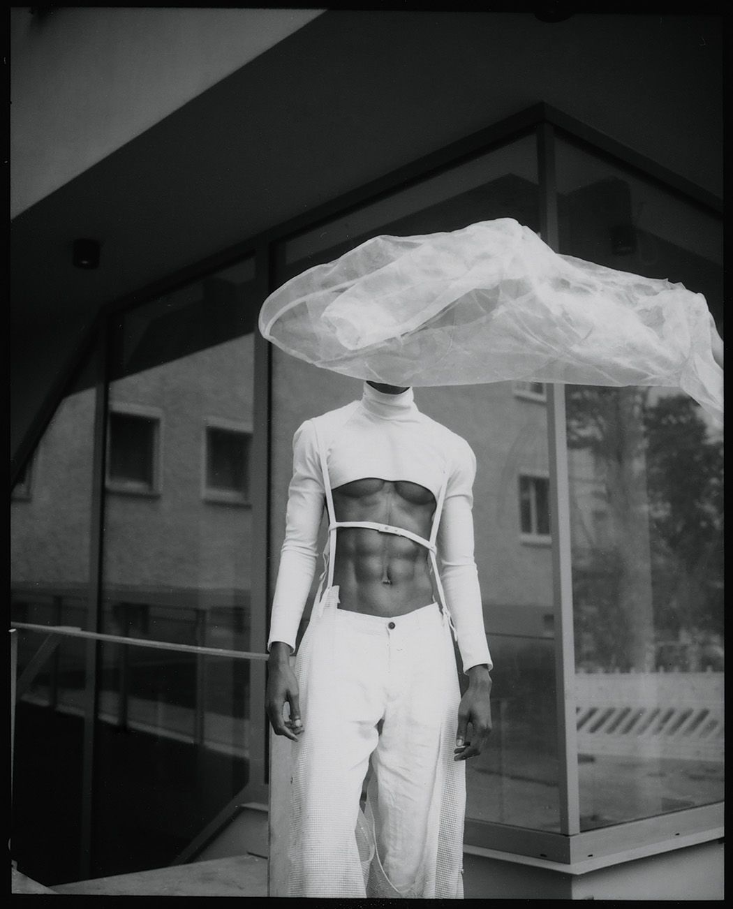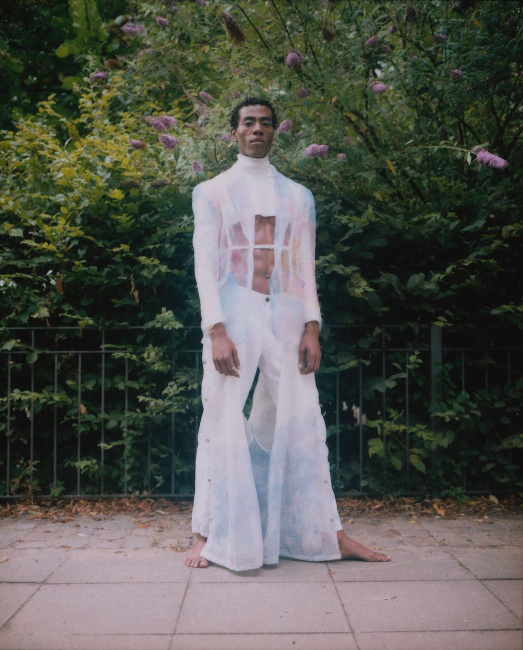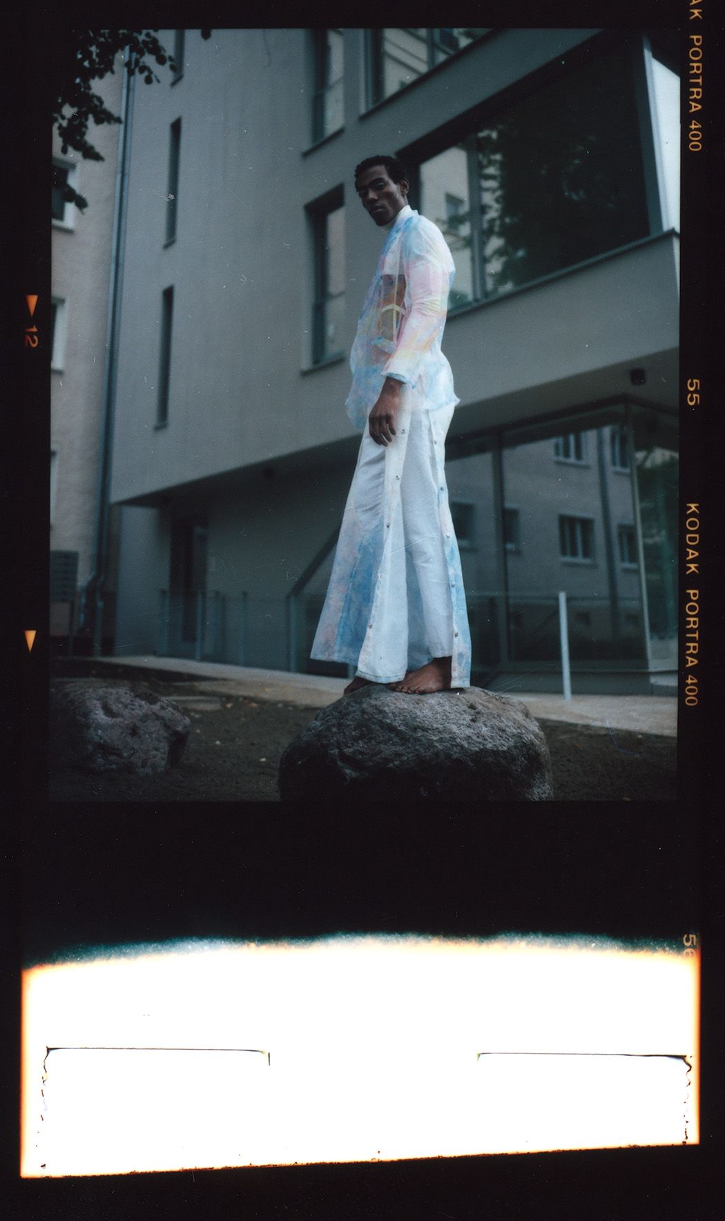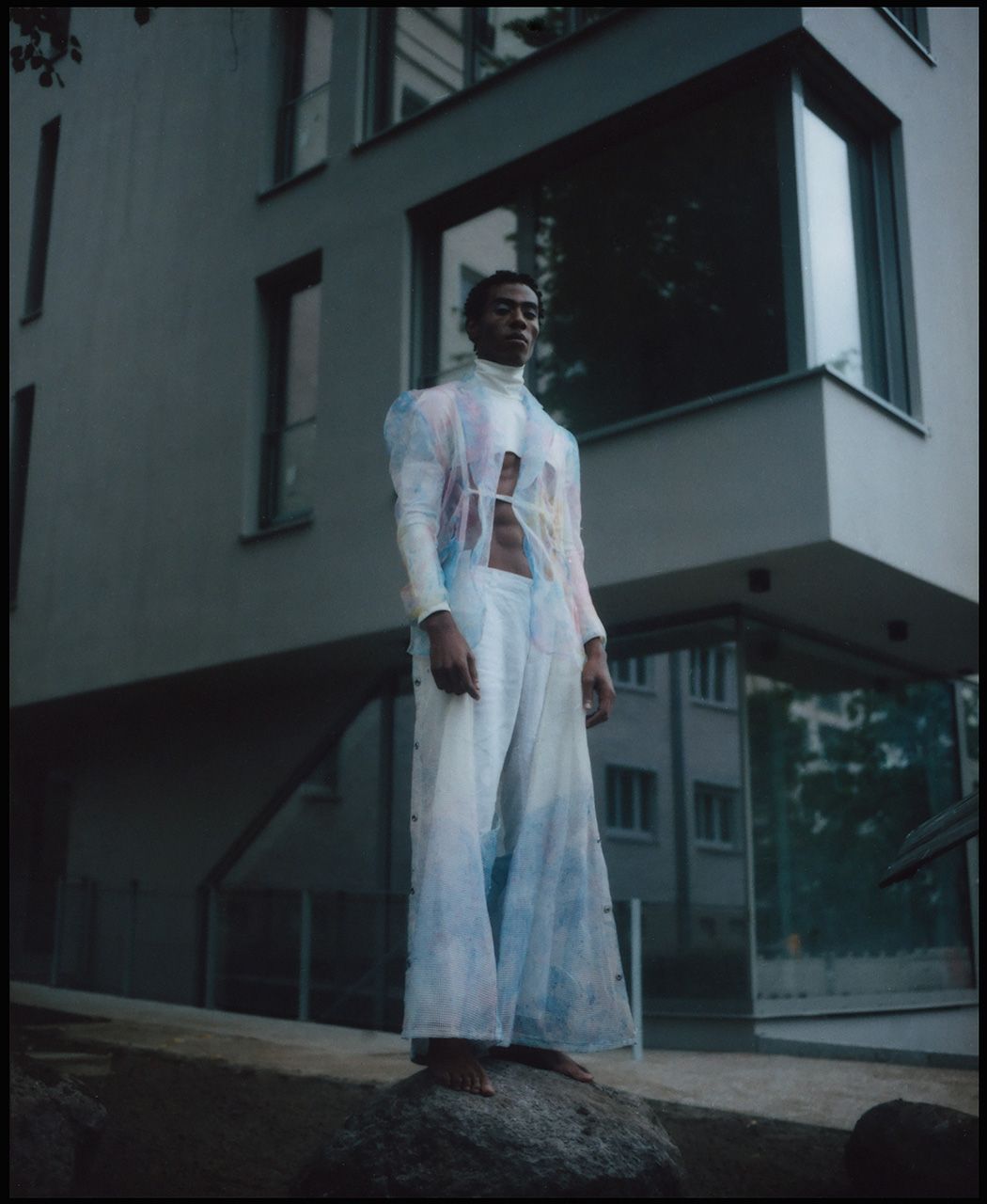 Taken from our new digital issue! Introducing Marina Kitsukawa: The French-Japanese Fashion Design Graduate of the University of the Arts in Berlin. Photographer Alîn Zerya captured model Arnord Ingendju in the amazing creations from the young designer. “The starting point of this work is the analysis of the craft technique Suminagashi (inc floating on water); a traditional Japanese technique practised as early as the 12th century. Later in the 17th century, the art of Suminagashi spread throughout Europe known as marbling.