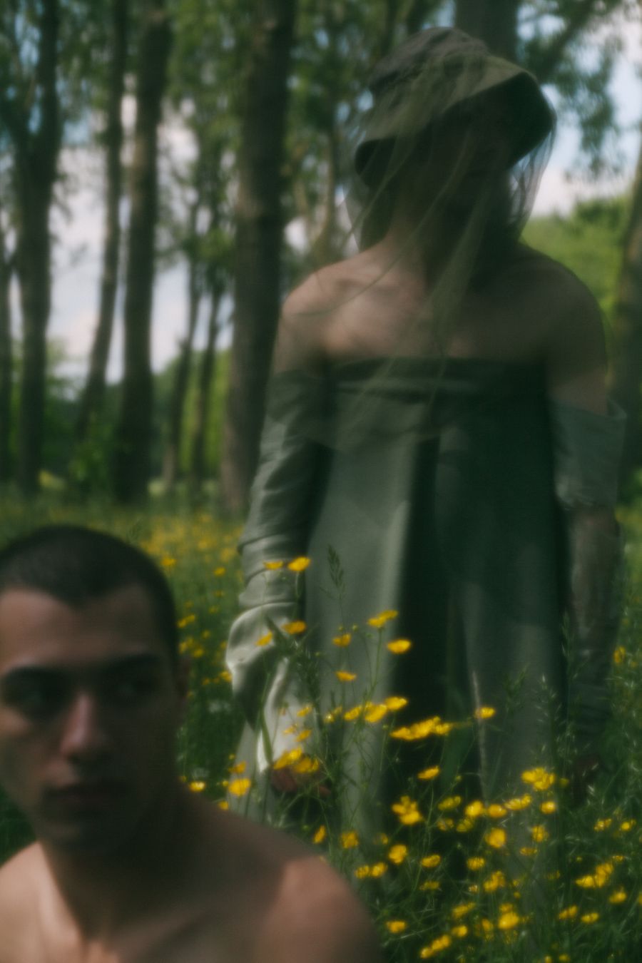 A mix between harsh, plain volumes and romantic drapery. Strict but poetic.
