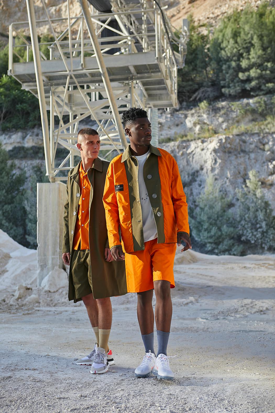Spendthrift: Jersey remains the primary fabric on which to express creations with colours that recall a summer sunset on an Umbrian marble quarry. In this collection, knitwear gains the upper hand on sweatshirts with big printings on jacquard sweaters. A soften fitting and fringed hems emphasize the street-style. The strong Asian influence is underlined by the fabric choice: pipeline and twill cotton. Shirts have softened lines and are extremely minimal.