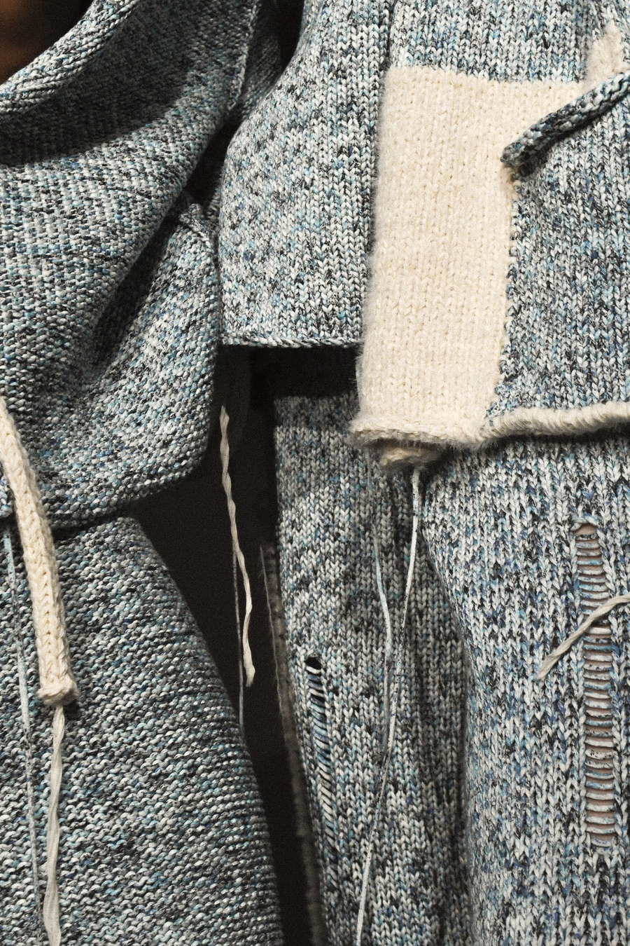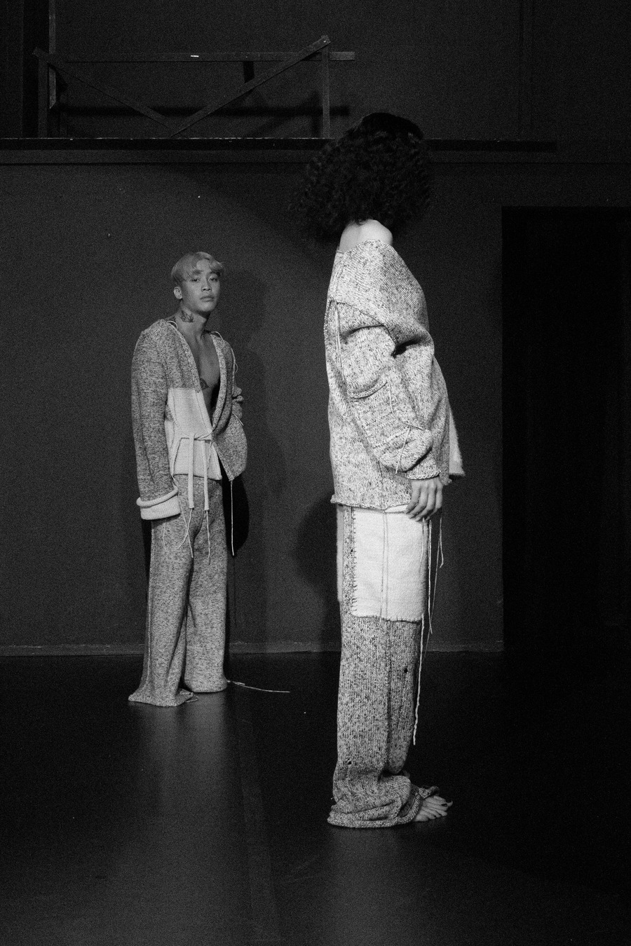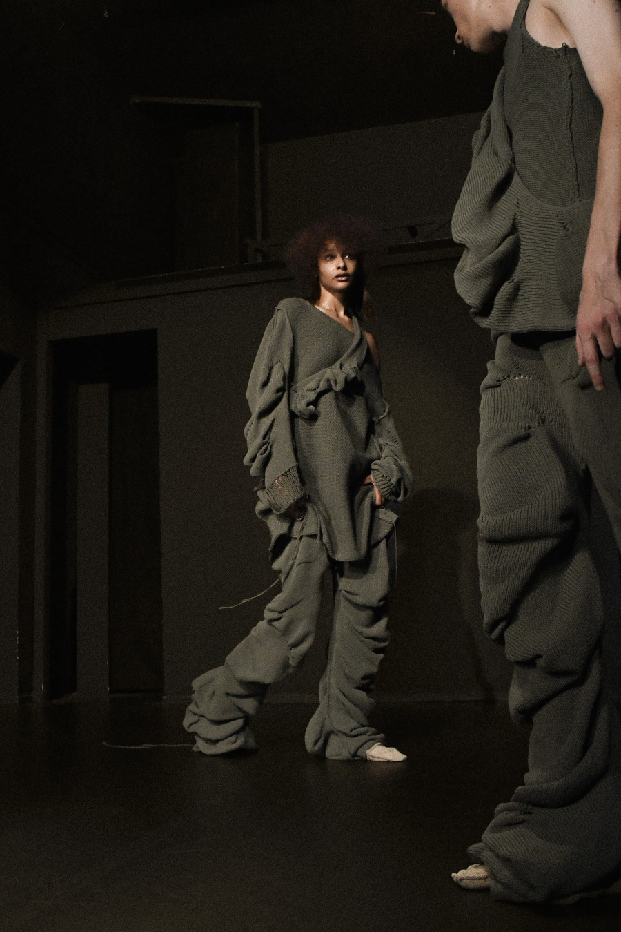I just don’t like to be put in one box so I tried to combine everything and still have it harmonised with each other. I am a big Jazz lover and when I knit, I always listen to jazz and get inspired by the music. The collection is like a jazz jam session. A bit all over the place but at the end it still harmonizes. That’s why the Campaign shoot was shot on a stage and we added a trumpet in some images. In the end, the yarns and everything being knitted combine everything.