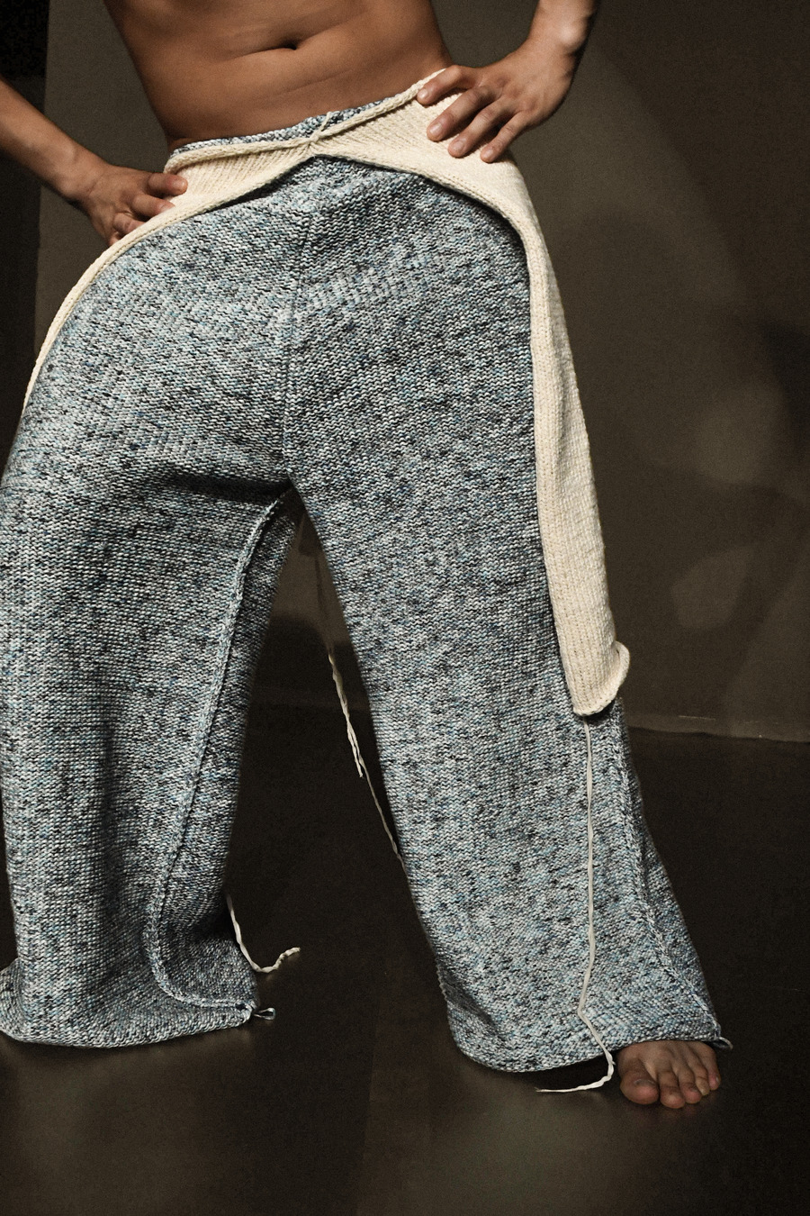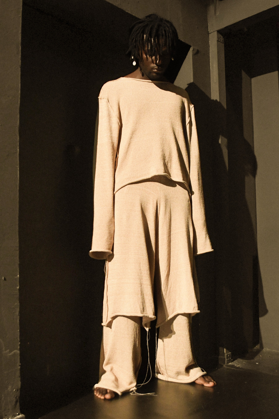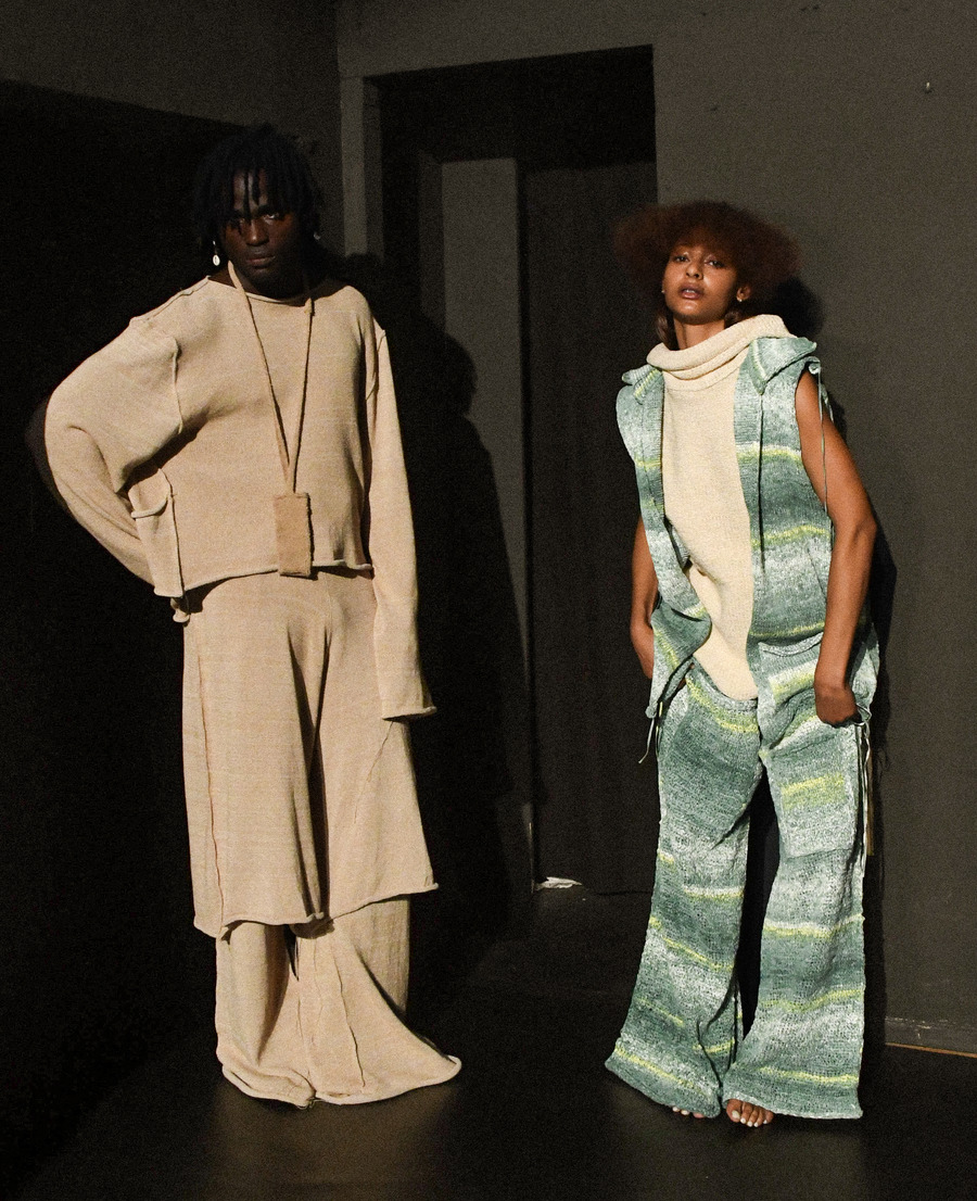 To be honest, I do it all by hand because I can’t afford to do everything with industrial Machines. Sampling industrially is very expensive. I’ve been wanting to do my brand for years and I kept having the excuse I can’t do it because knitting with industrial machines is too expensive. One day I just decided I could still show what I can do with the resources that I have. I started knitting