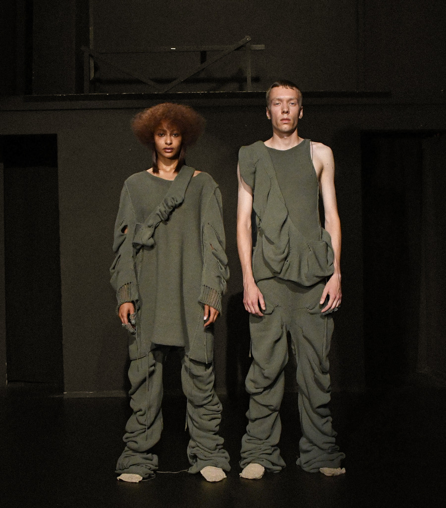 LARASEVERA, founded by the visionary designer Lara Severa, challenges conventions and redefines the perception of knitwear. What sets this brand apart is its ability to seamlessly blend timeless design with a modern understanding of silhouettes and shapes. Lara’s keen eye for magnifying the potential of knitted fabrics has resulted in a collection that transcends traditional notions of knitwear, offering a diverse range of unisex suits, coats, fine dresses, and accessories. The brand effortlessly combines the comfort we associate with knitwear, with a distinct contemporary edge. The Spring/Summer 2024 collection from LARASEVERA is a testament to the brand’s fearless approach to fashion. By fusing unisex ready-to-wear pieces with avant-garde all-black knit couture, Lara Severa demonstrates her audacious vision. Join us as we delve into the world of LARASEVERA, where tradition meets cutting-edge innovation, and where the limits of knitwear are shattered, giving birth to a new era in fashion. Take a front-row seat and prepare to be captivated by the magic woven with every stitch.