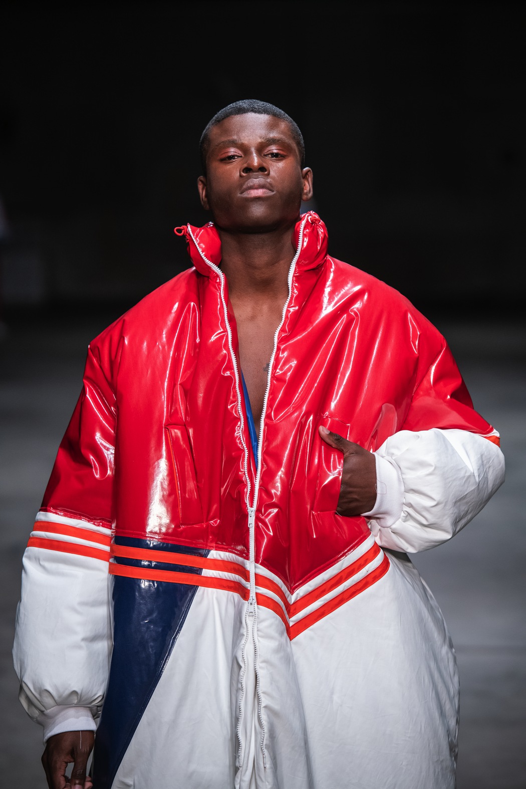 My graduation collection ZZX – The Mixed Team has been inspired by the early modern Olympic games, where athletes from different nations participated in one team and their results were grouped under the ‘mixed team’ designation with ZZX as a shortcut, such as GER for Germany or NED for the Netherlands. Coming from a family of athletes myself sportswear has always been a natural direction for me and I researched how national identity is celebrated in the world of sports. Espacially in times of globalization it triggers me if we still feel the need to identify within our nationality. The athletes coming together in the Olympic Games is something I’ve got to experience in the urban dance community. My entire drive formulates in my curiosity of different cultures coming together and when exchange happens. Espacially now, where hip-hop is used as a trend in fashion, I think it is most important to show that it is a culture and we do need to appreciate that before we take something.