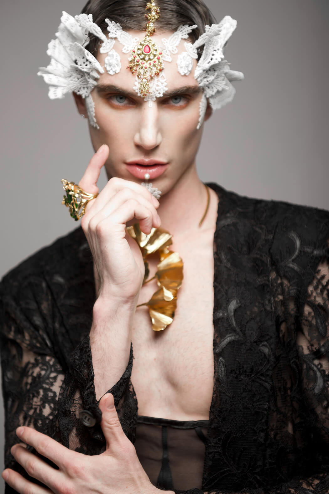 A KALTBLUT exclusive male model editorial and cover story of our #PrideIssue. Photography by Alberto Lanz. Model is Chris Flora. Makeup by Guillermo Perez. Fashion stylist is Daniel Furlong. Fashion by Maison Margiela, Centro, StudioV87, Moschino, Fernando Rodriguez, La Santa Jewerly, Santa Maria La Rivera, Oscar de la Renta.
