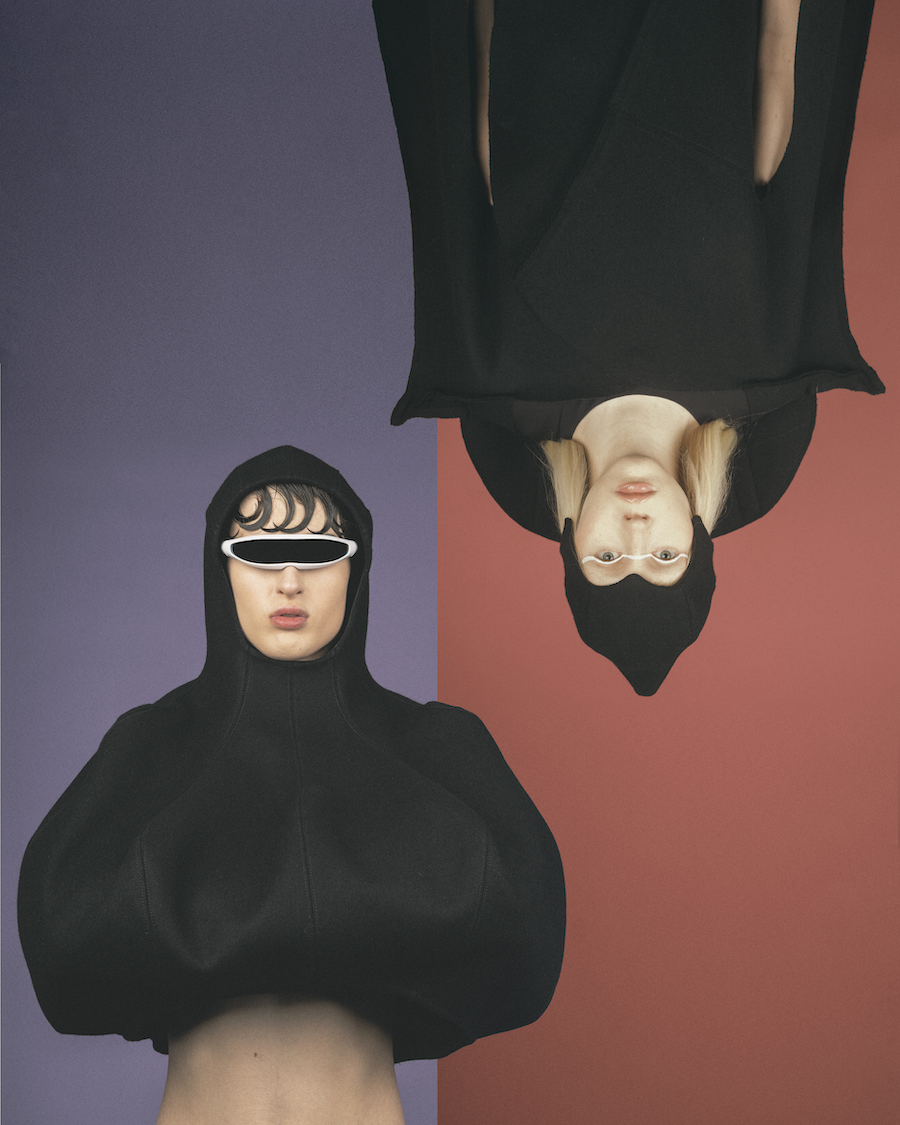 The human body becomes a form, along with the clothes, and the colours between them create a sense of visual pleasure. Ordine is the need for control but also for simplicity and linearity to stand out clothes as objects that cover and modify our body: everything becomes geometry removing the cultural conception of clothes as something that has a gender.