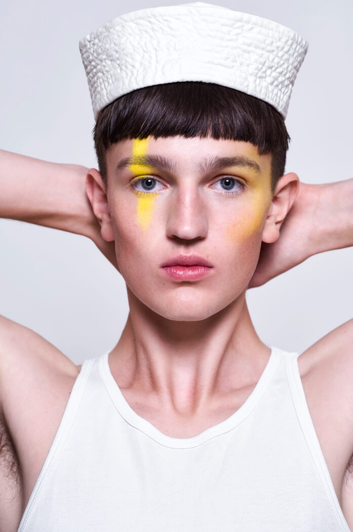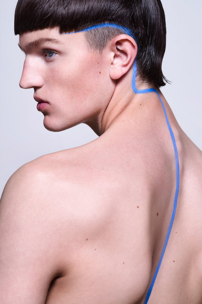 A KALTBLUT exclusive male beauty story. Photography by Julia Keltsch c/o Avenger Photographers. Model is Oskar Knickelbein from OM Management. Hair & Make-Up by Melanie Hoppe c/o Blossom Management. Styling by Lisa Maria Lohmann c/o Bigoudi. Fashion brands are DRKSHDW by Rick Owens, Jasmina Jovy, Levi’s, Maison Margiela. Make-Up brands are Nui Cosmetics und JACKS Beautyline.