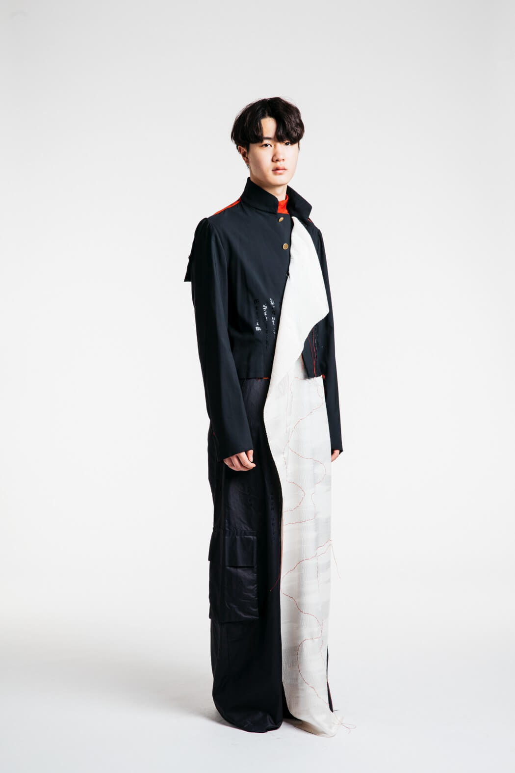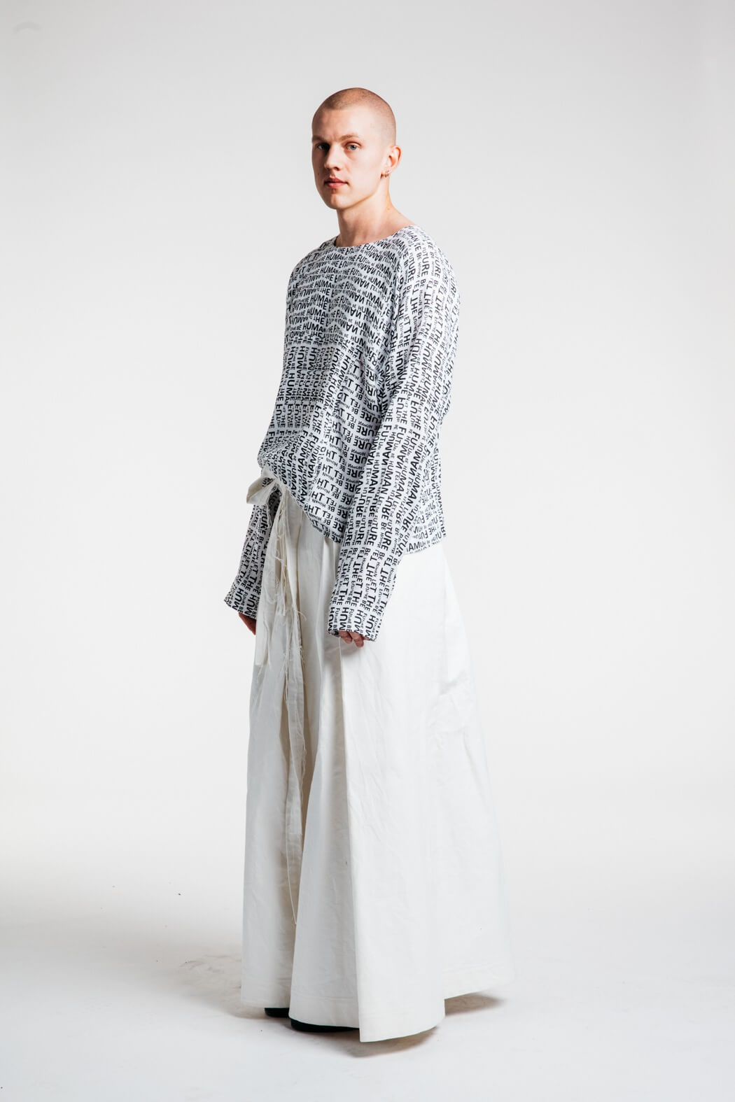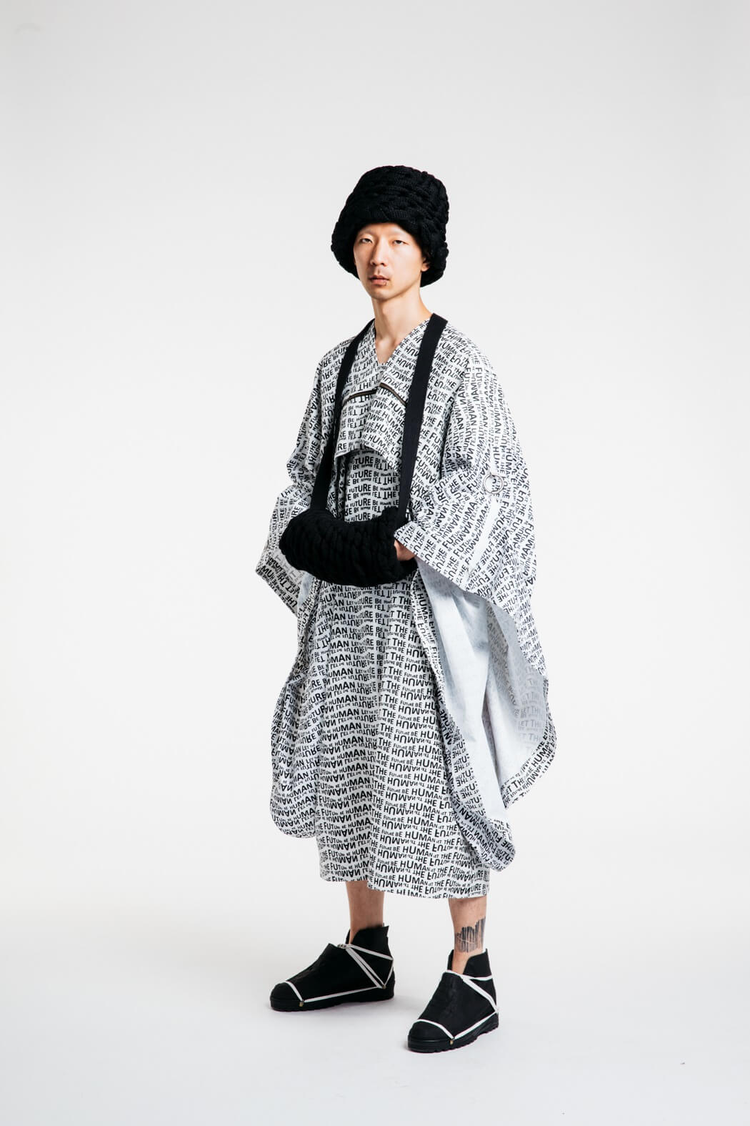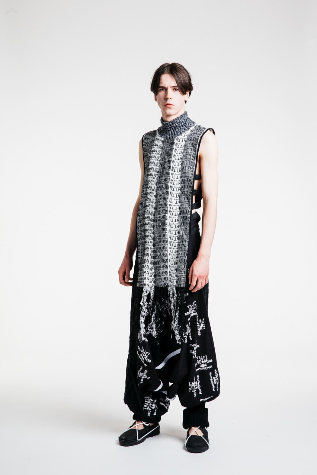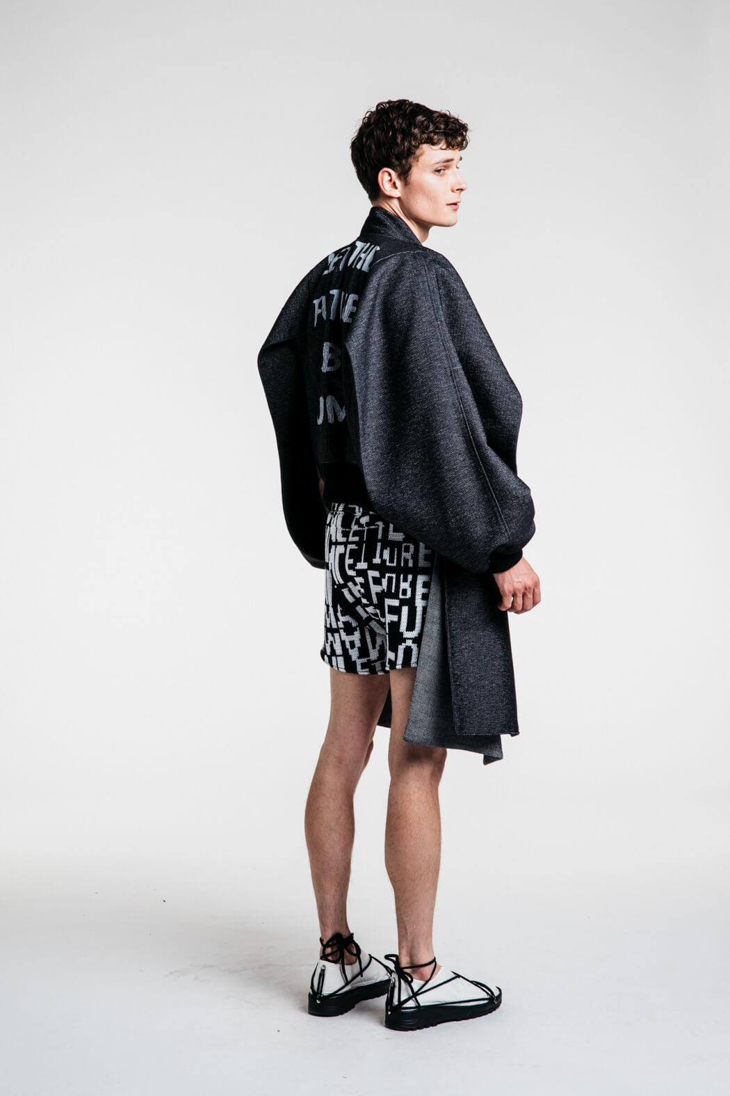 The young menswear designer showed a collection that focused on the detachment of stereotypical gender roles. With his collection “Let the Future be Human”, he presented an unconventional collection for men. Among other things, his models presented elegant evening robes, floor-length coats and co. The colour palette of the MA graduate remained reduced black and white. www.instagram.com/kaigerhardt_official