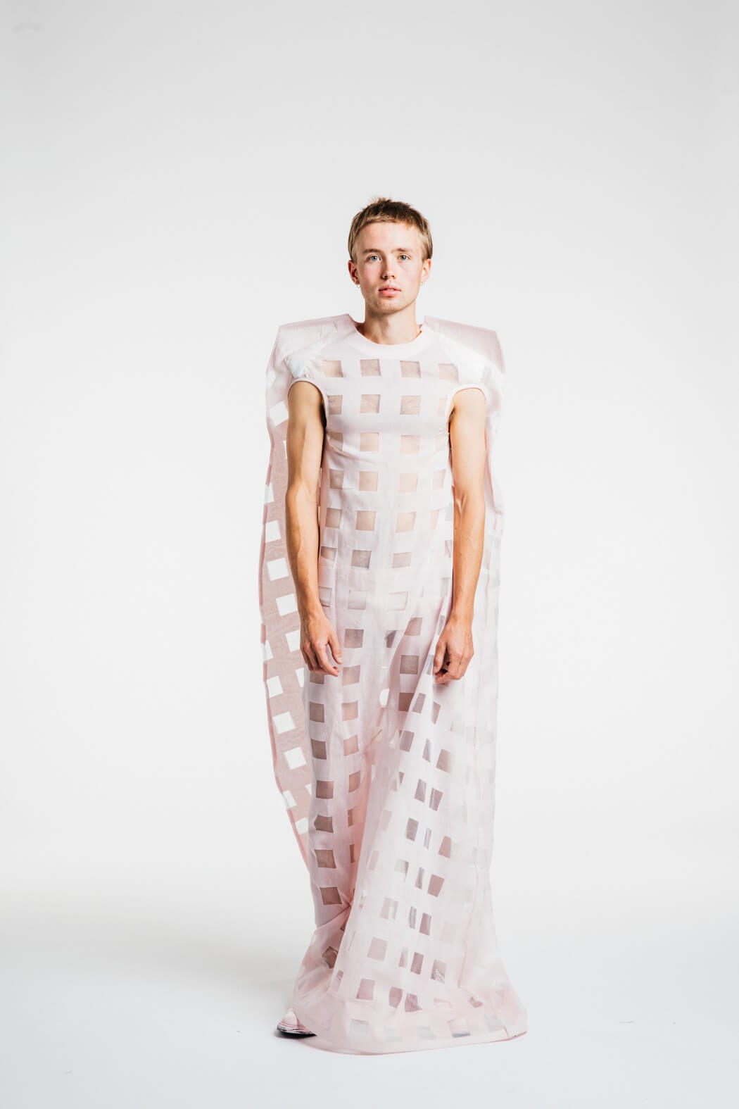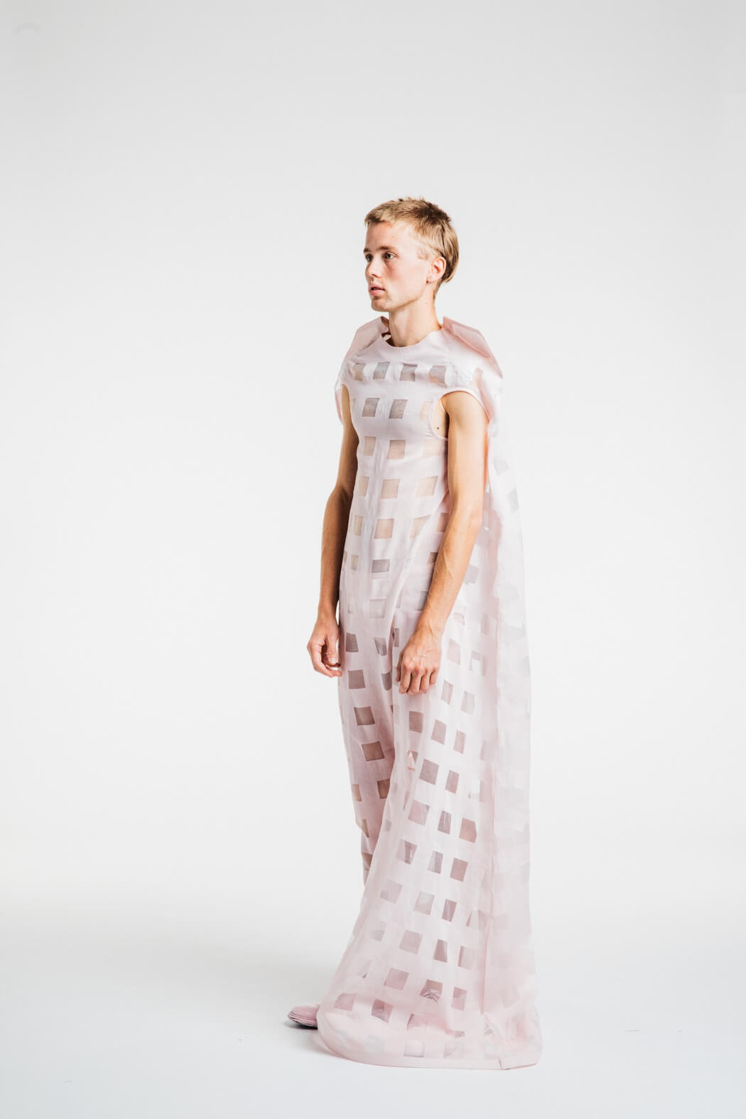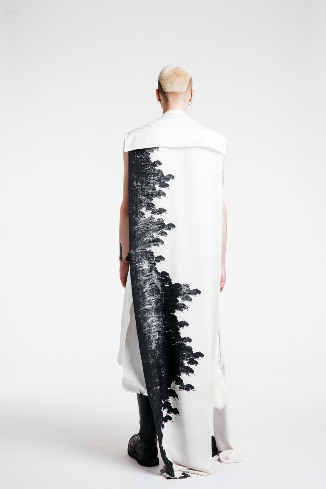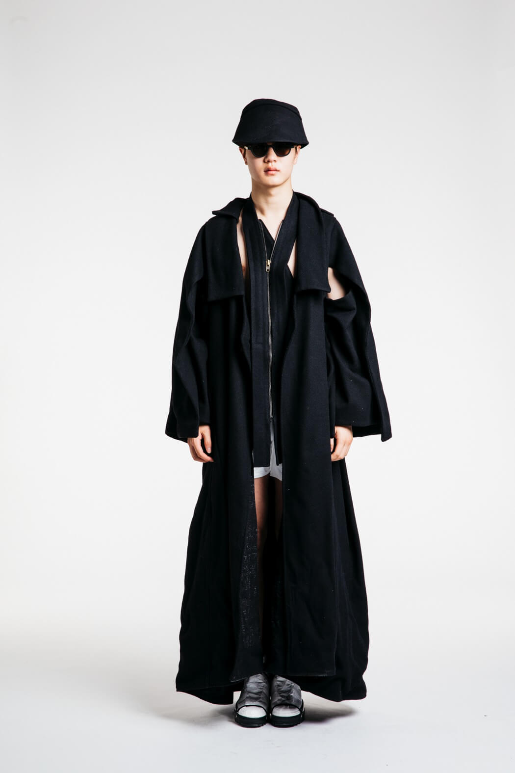 The young menswear designer showed a collection that focused on the detachment of stereotypical gender roles. With his collection “Let the Future be Human”, he presented an unconventional collection for men. Among other things, his models presented elegant evening robes, floor-length coats and co. The colour palette of the MA graduate remained reduced black and white. www.instagram.com/kaigerhardt_official
