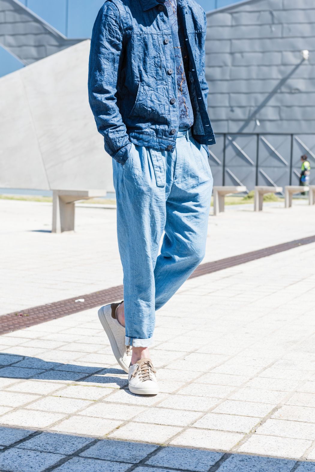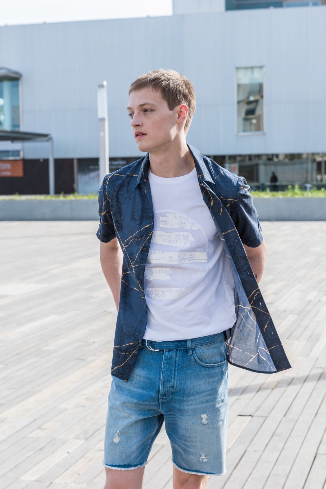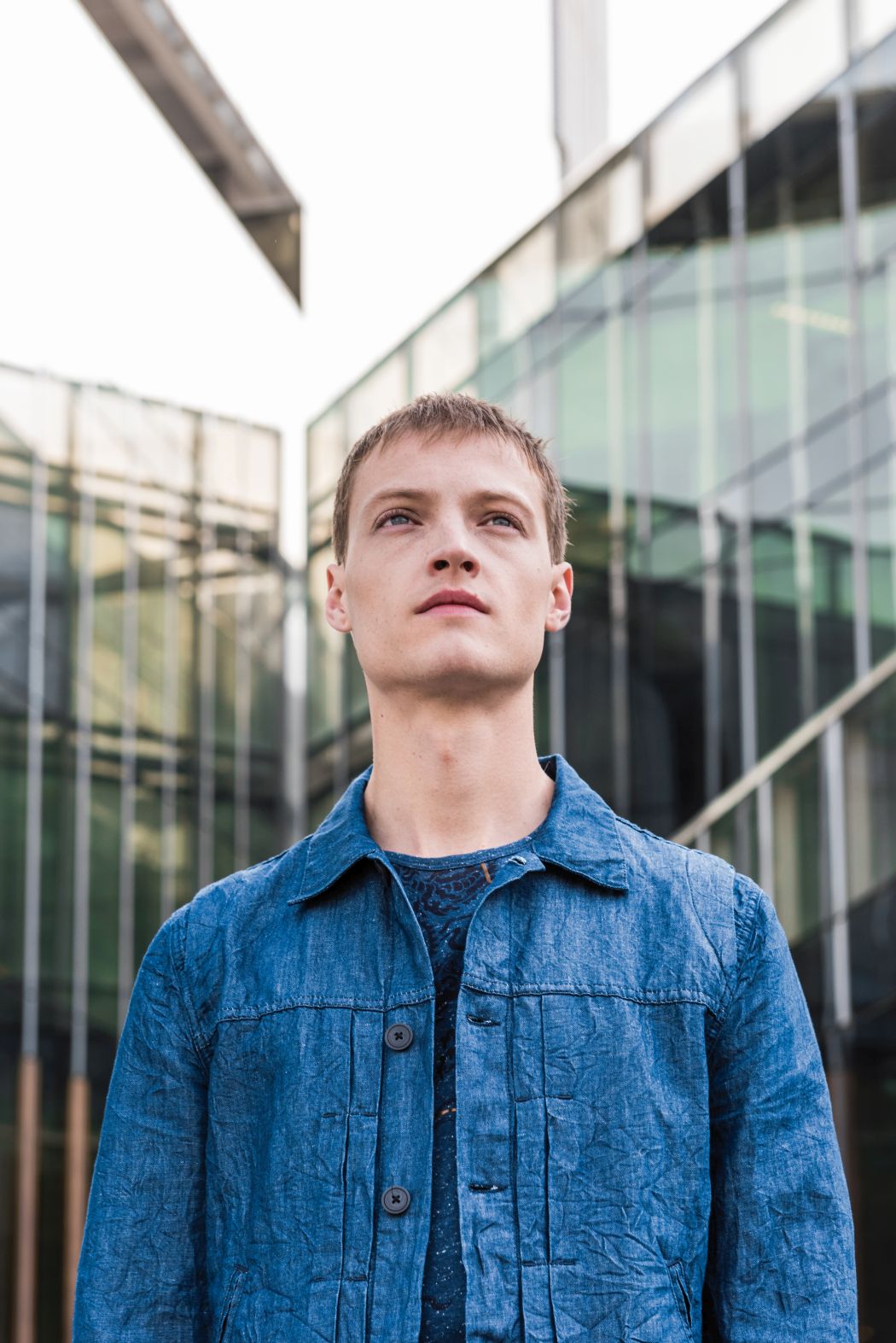 Inspired by the contrast between modern architecture and the element water, denim and the colour blue determine the collection. The collection consists of several shirts, partly simple or printed with dragon prints and gold elements. Furthermore, there are shorts and airy denim trousers, as well as a cotton poplin jacket with an asymmetrical back.