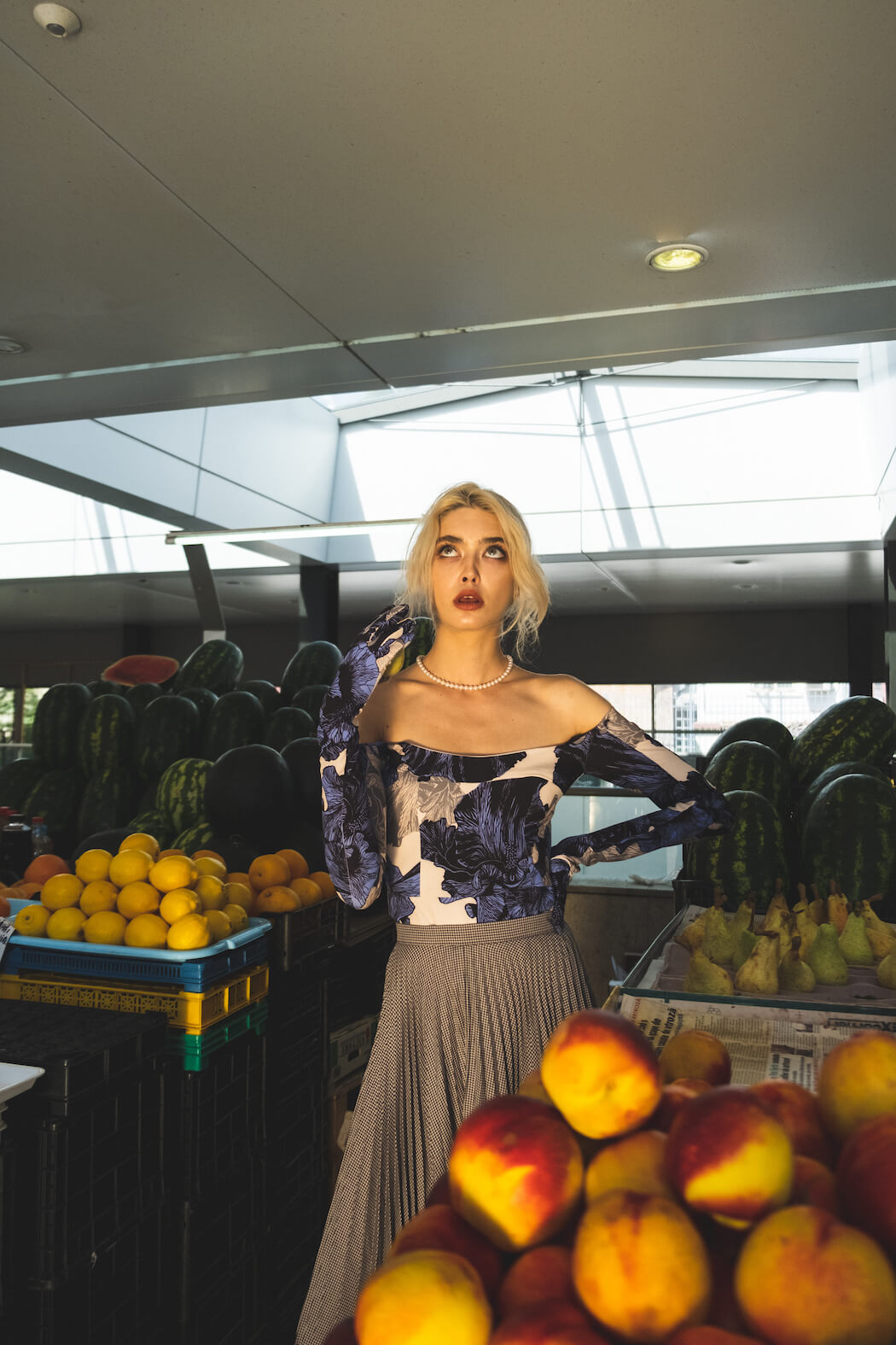 The new reality of 2020 changed our perception of the world. Our routines changed, and we ended up stuck in our houses, the clothes in our closets forgotten. The pandemic left us with no place to go, only to wear our best outfits to the only places open – the farmers market or the store. She is “Out of Place”, in an empty town, with nowhere to go. Beautiful, but with no one to see her.”