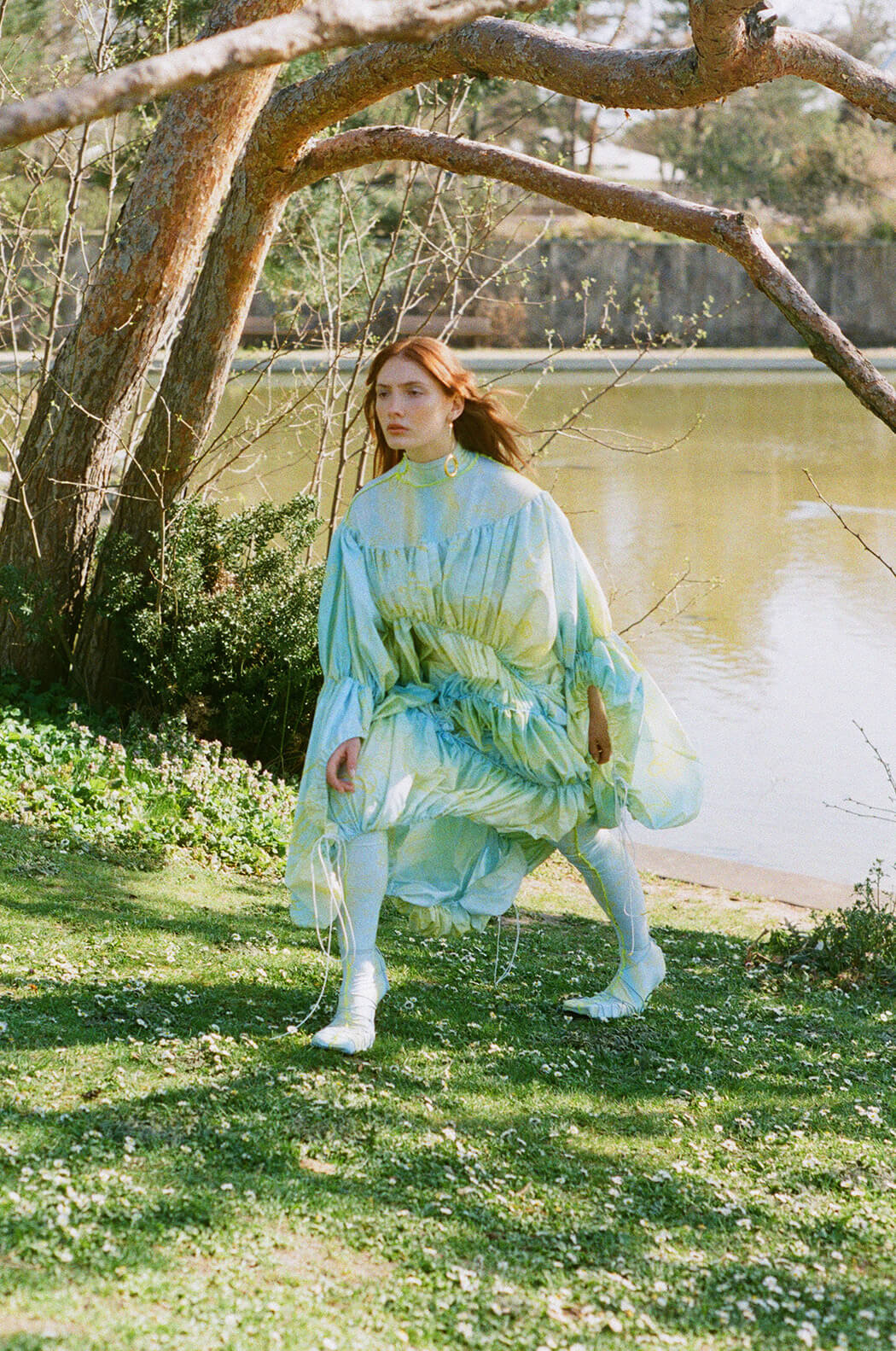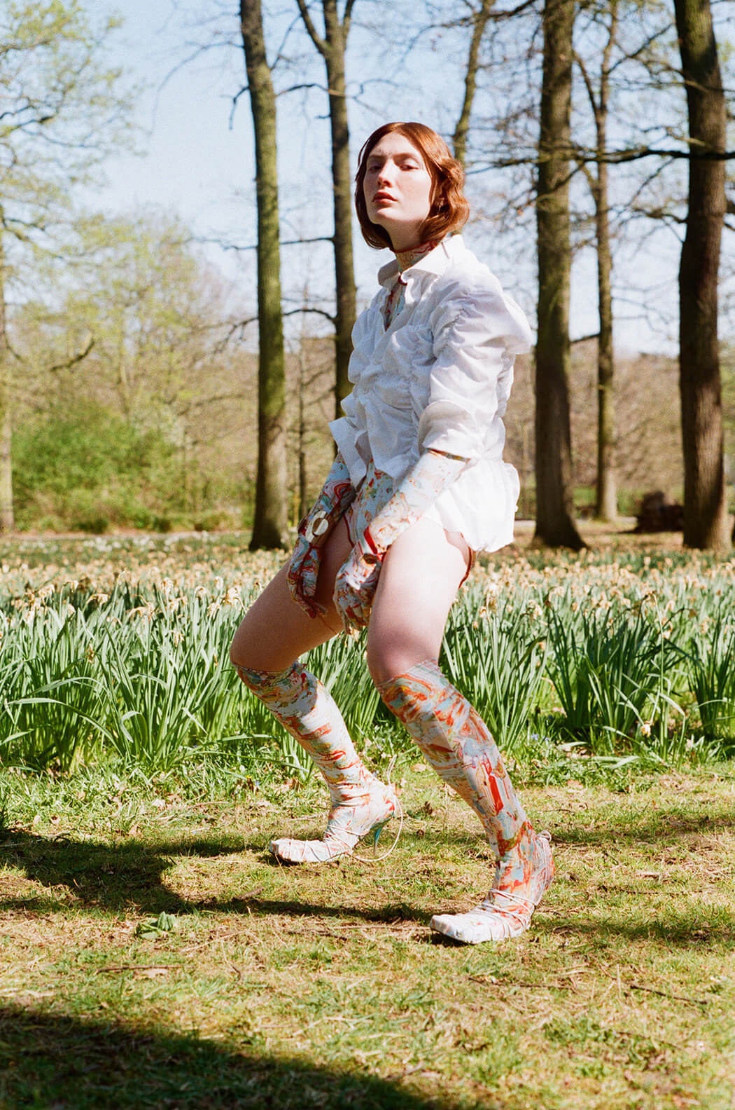 A KALTBLUT exclusive. Modelling by Marine Cateland. Photography by Charlotte Haulot. Styling by Thomas Lebon. Artistic direction by Charlotte et Thomas. Makeup by Agnes Obis. Hair by Reina Kim. Fashion by Leftfig, Mimilamour, Carla Boré studio, AOA Atelier, Cem Cinar, Hélène Zubeldia, Mirco Gaspariand and Sloggi.