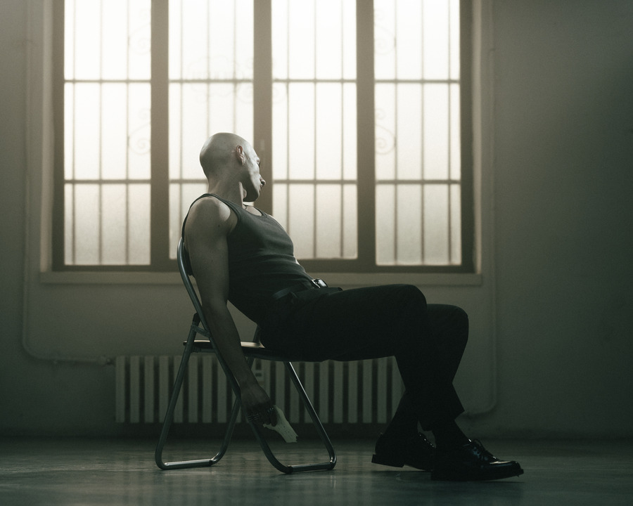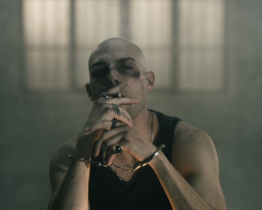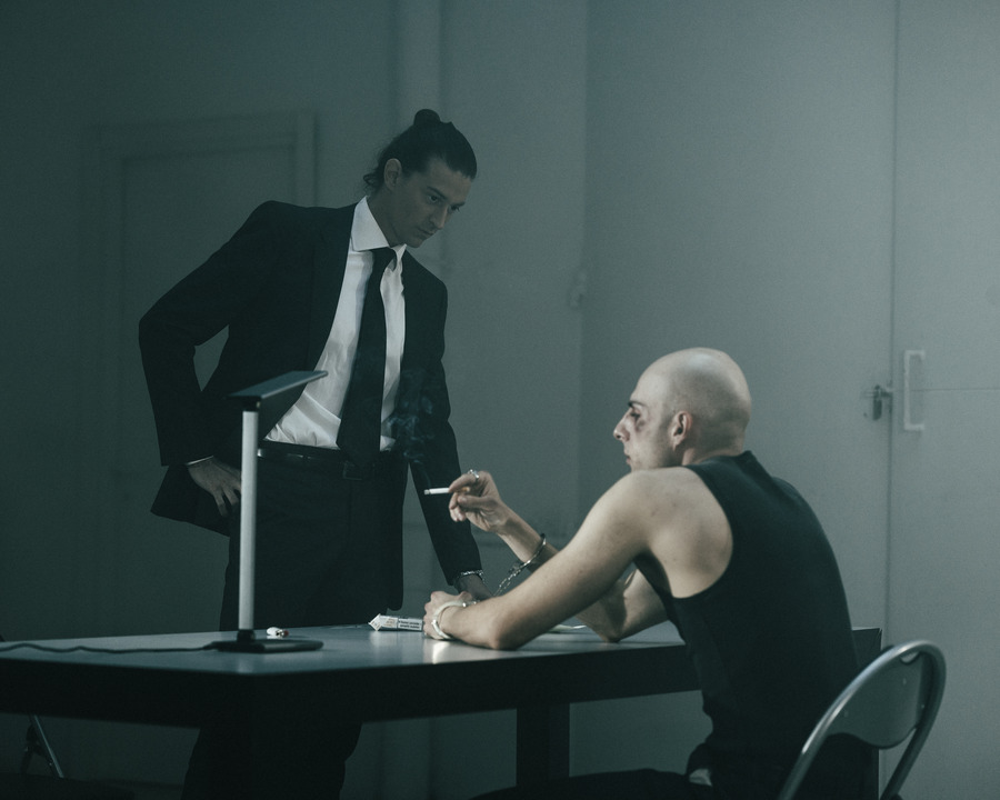 A KALTBLUT exclusive . Photography by Alessandro Fabi. Art direction by Nicola Minotti. Production by Glami Inside Fashion. The models are Flavio Zebri and Federico Ceccarini. MUA by Simona Salvagni. Styling by Brenda Riccio. “The interrogation begins with the usual clash of wills: the cop, solid, unwavering, tries to bend the criminal, described as fragile and confused, ready to crack under pressure. But, little by little, the scene turns into a disturbing psychological game. The policeman’s questions, harsh and precise, seem to touch intimate chords, revealing a vulnerability not expected of a lawman.”