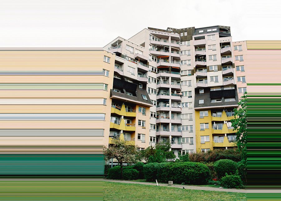 We consider buildings and architectural structures as geometrical objects and also as ornamental subjects. Time passes through them and to show this “stain of time”, we chose to make a layout with the technique of the Translation of points. The result is an image, with a lot of colors and also a rhythm, very geometric. We photographed several buildings and architectural structures in Berlin with analog cameras and the use of a zoom. We are really sensitive to colors and patterns and the use of the zoom puts the light on details. We combined pictures and translations of pictures to create a moving effect.