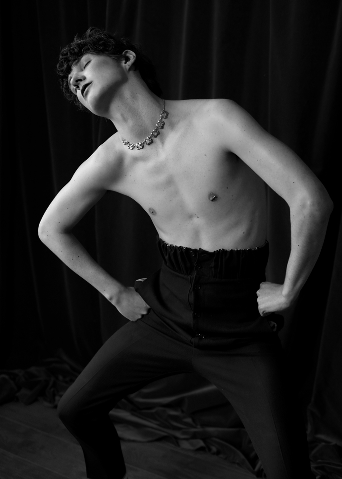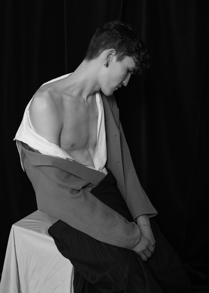 A KALTBLUT exclusive menswear editorial. Photographer Mustafa Sarwar captured a bunch of male models for us: Jack, Tyrone and Hamish @ Model Team. Styling by I’ll Be Your Mirror. Grooming by Shaun Lavender. “I am a portrait and fashion photographer based in Glasgow, Scotland. I was listening to a podcast by This American Life called “Sissy” and one of the stories, which the editorial is named after, brought to light an interesting fact. People are becoming more and more comfortable with the ‘idea’ of men being gay but seeing men as feminine or weak is still an issue for many people. It’s not so much to do with sexuality as it is to do with how people are used to perceiving gender. This editorial is a way to have this conversation and challenge gender roles through fashion.” – Mustafa Sarwar