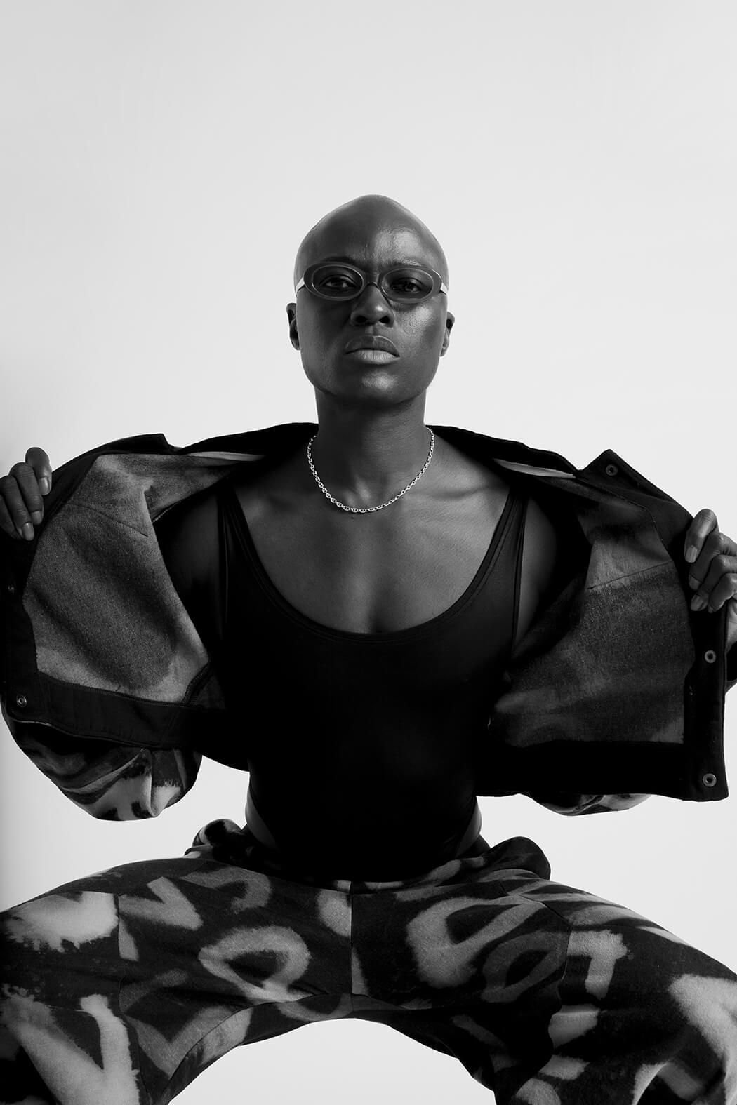 A KALTBLUT exclusive. Photographer Keana Kastner captured topmodel Papis Loveday management by Kolja Grueske for us. Styling by Emma Gyllström. Hair and Make-up by Tamara Sauer. Brands are FADE OUT Label, Not Too Sweet, UY Studio, Melisa Minca, Newrock, Ugg, Sue the boy.