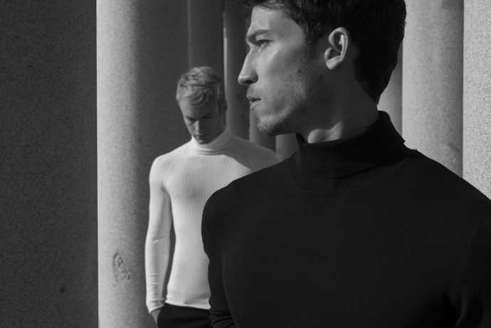 A KALTBLUT exclusive menswear editorial from Madrid. Photography by RinaldoSata. Models are the Spanish Iñigo Aguas and the Puerto Rican Francisco Paniaguas, both models of “UNO BCN” based in Madrid. Styled by Pablo Guerrero Aguilar. Hair and make up by Andreas @Corta_Cabeza Salon Team