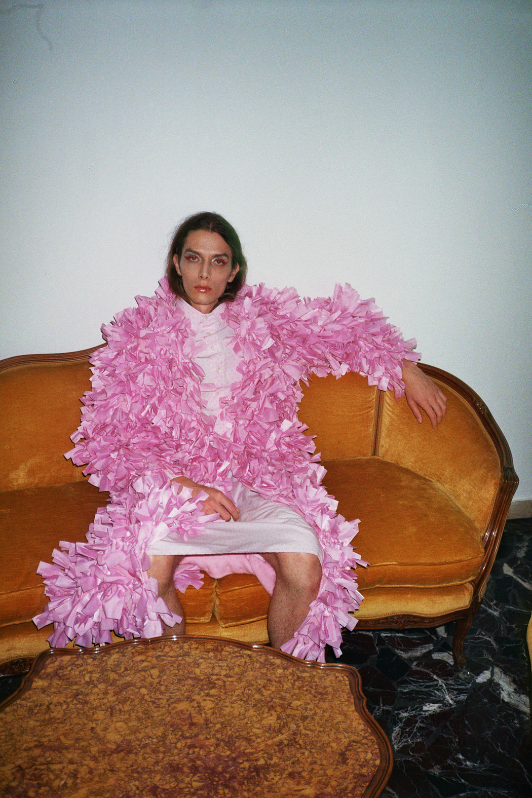 Denis Micheli – Born in Varese, Italy, in 1988. He lives and works in Milan. After a BA degree in Cultures of Fashion and an MA degree in Visual Arts, he’s working as a freelance stylist. His research is based on mutation and transformation, in a vision where fashion and visual arts flow into a new world made by different concepts of nature, humanity, animals and gender.