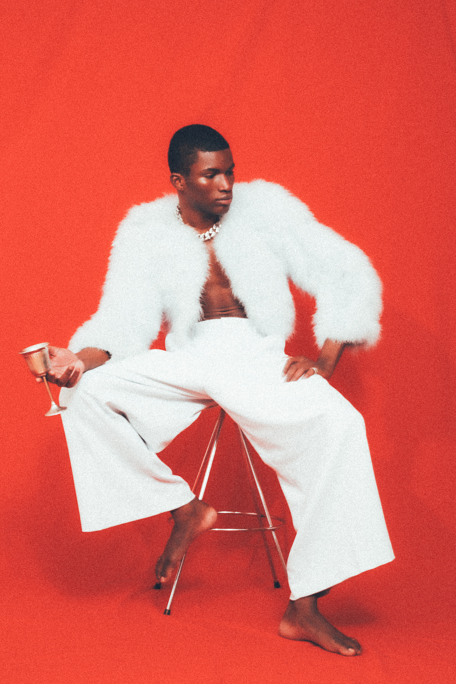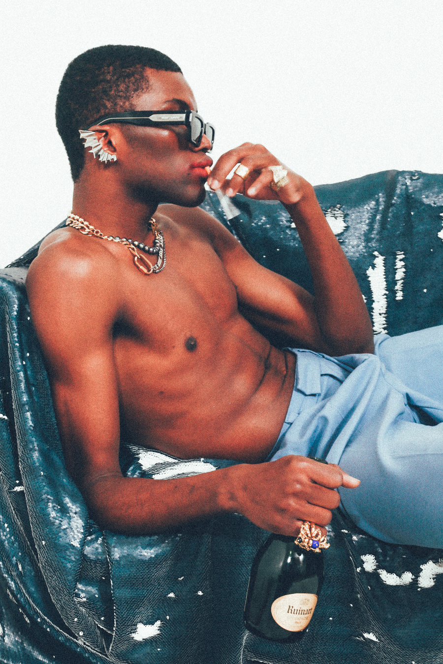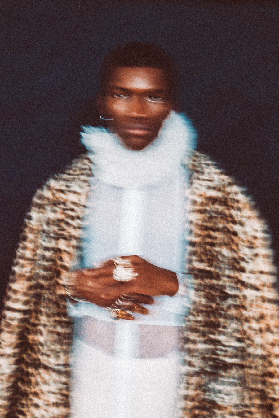 A KALTBLUT exclusive. Photography & creative direction by Amara Ait Idir. The model is Abdoul Razak. Artistic direction by Paul Cadre & Léa Le Fouest. Make up by Inès Bouden. Production by Paul Cadre. Stylism by Julia Jezequel using Balmain, Dior, Doc Martens, Dolce & Gabbana, Jean-Paul Gaultier, Lanvin, Loewe, Prada, Vivienne Westwood, Zadig & Voltaire. Jewels and accessories used are Koché, In Gold We Trust, Saint-Laurent, Tissot, Zadig & Voltaire.