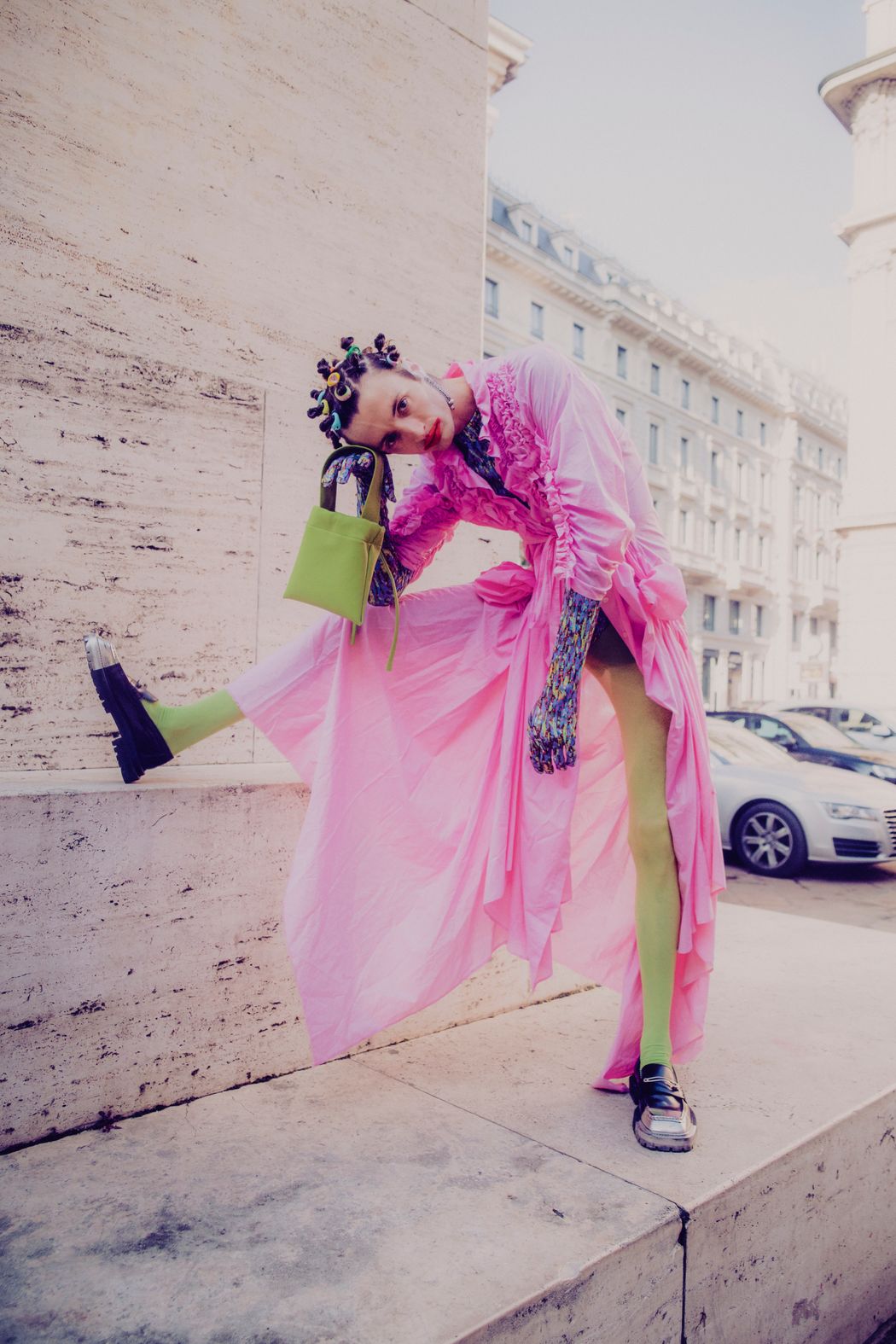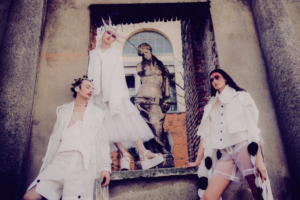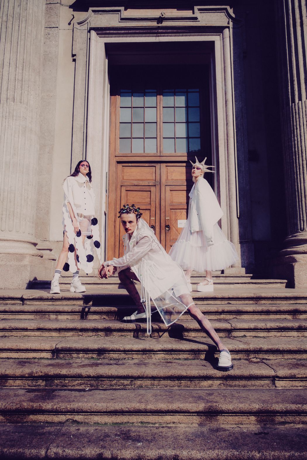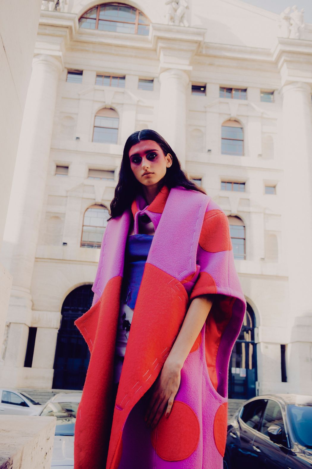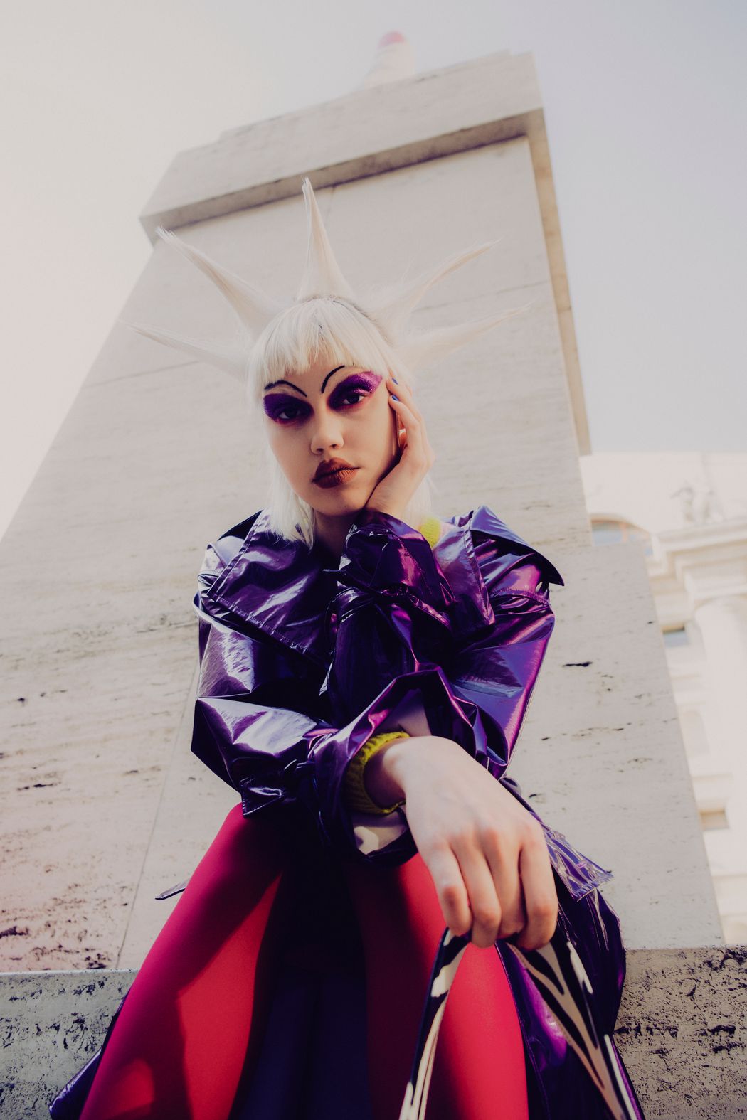 The inspiration of this was the club kids from the 90s and their vision, but reinterpreted in this pandemic times were the young people can’t party anymore and they walk in the street dressed in club clothes and showing their will to go back to the party and be free.