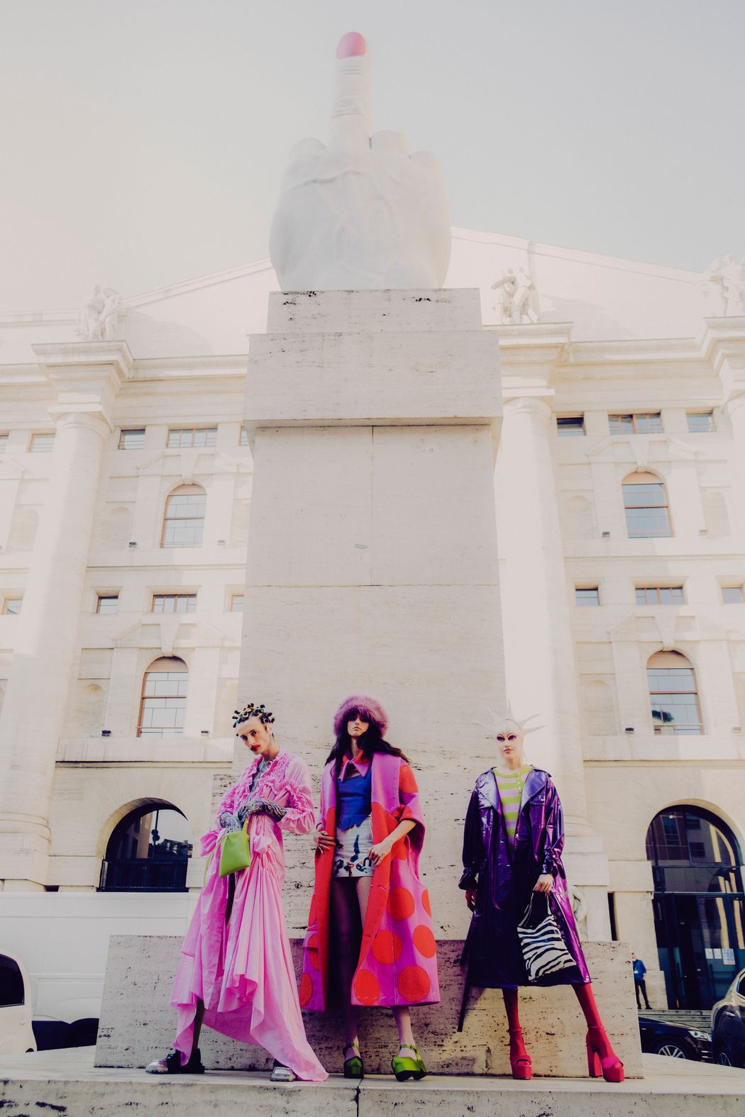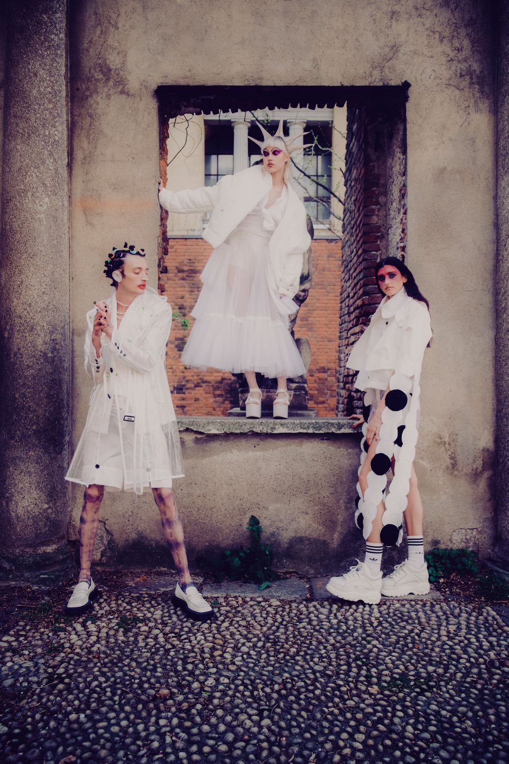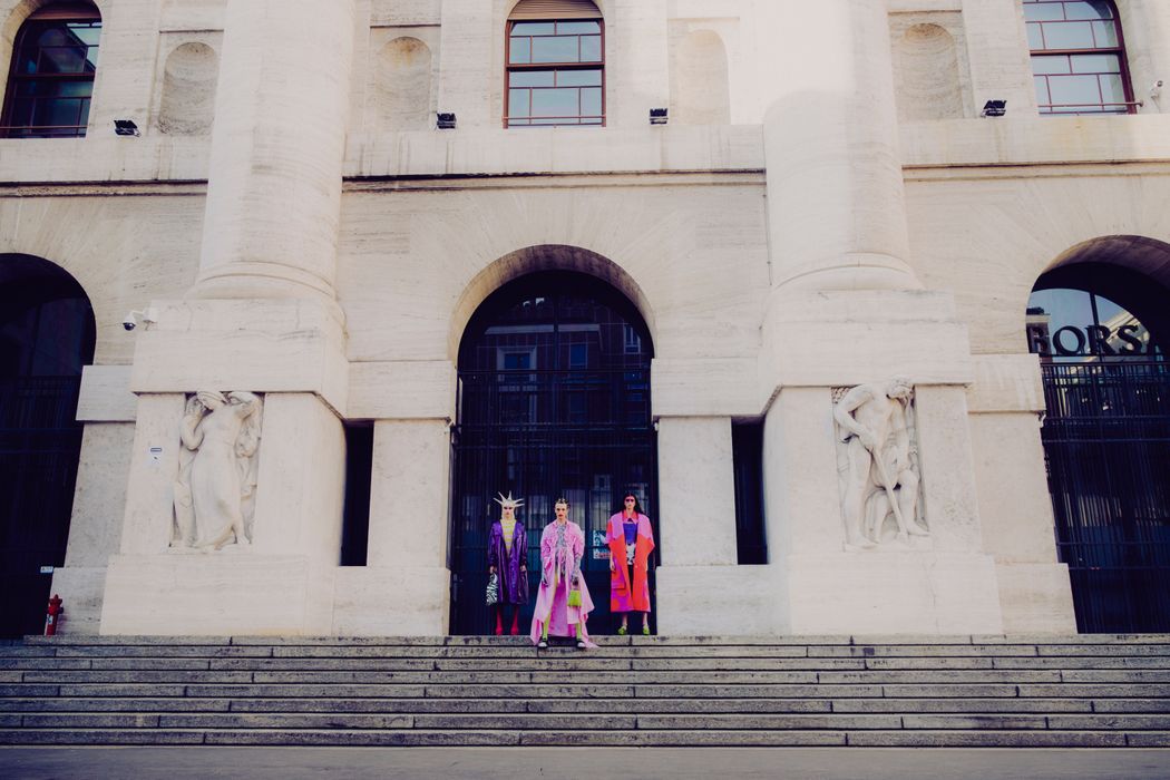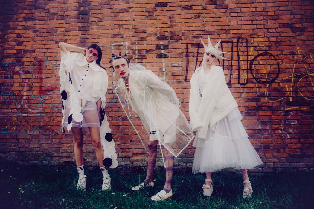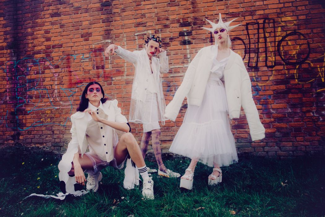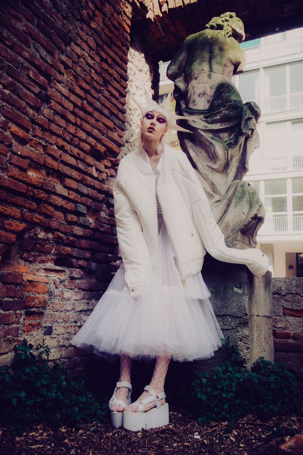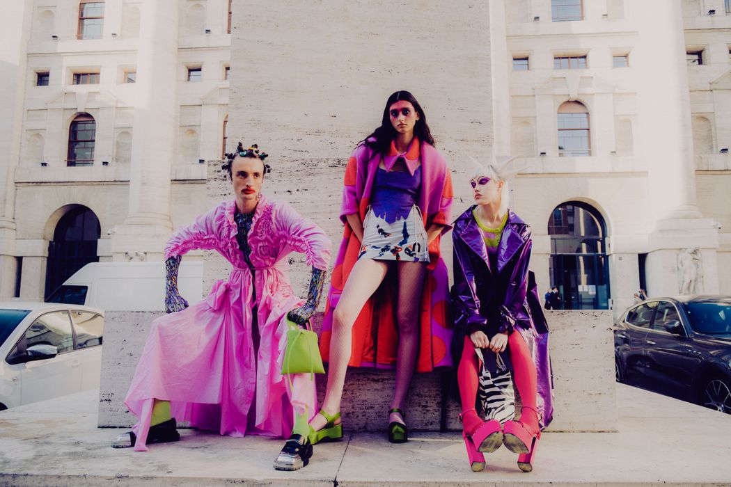 The inspiration of this was the club kids from the 90s and their vision, but reinterpreted in this pandemic times were the young people can’t party anymore and they walk in the street dressed in club clothes and showing their will to go back to the party and be free.