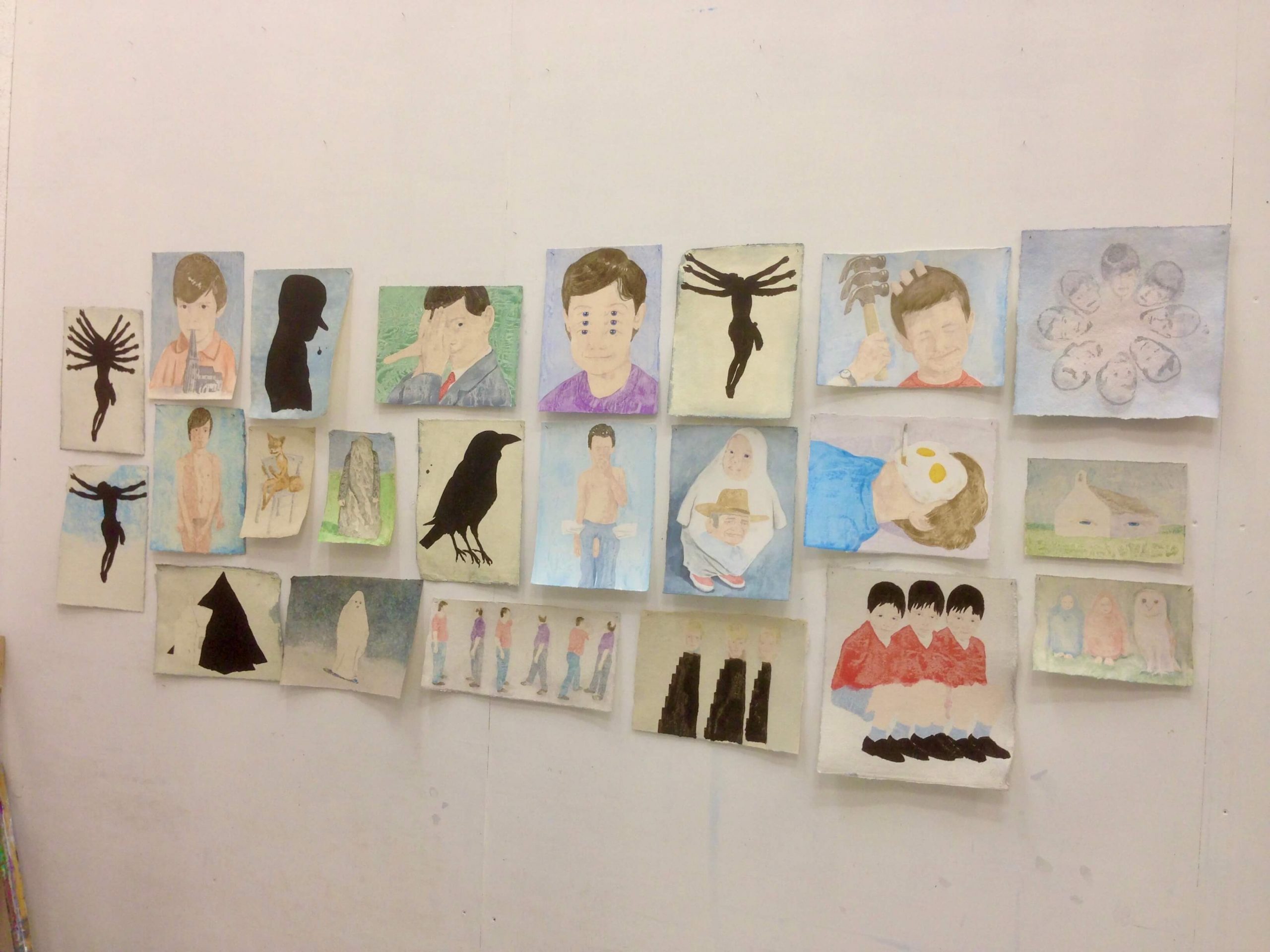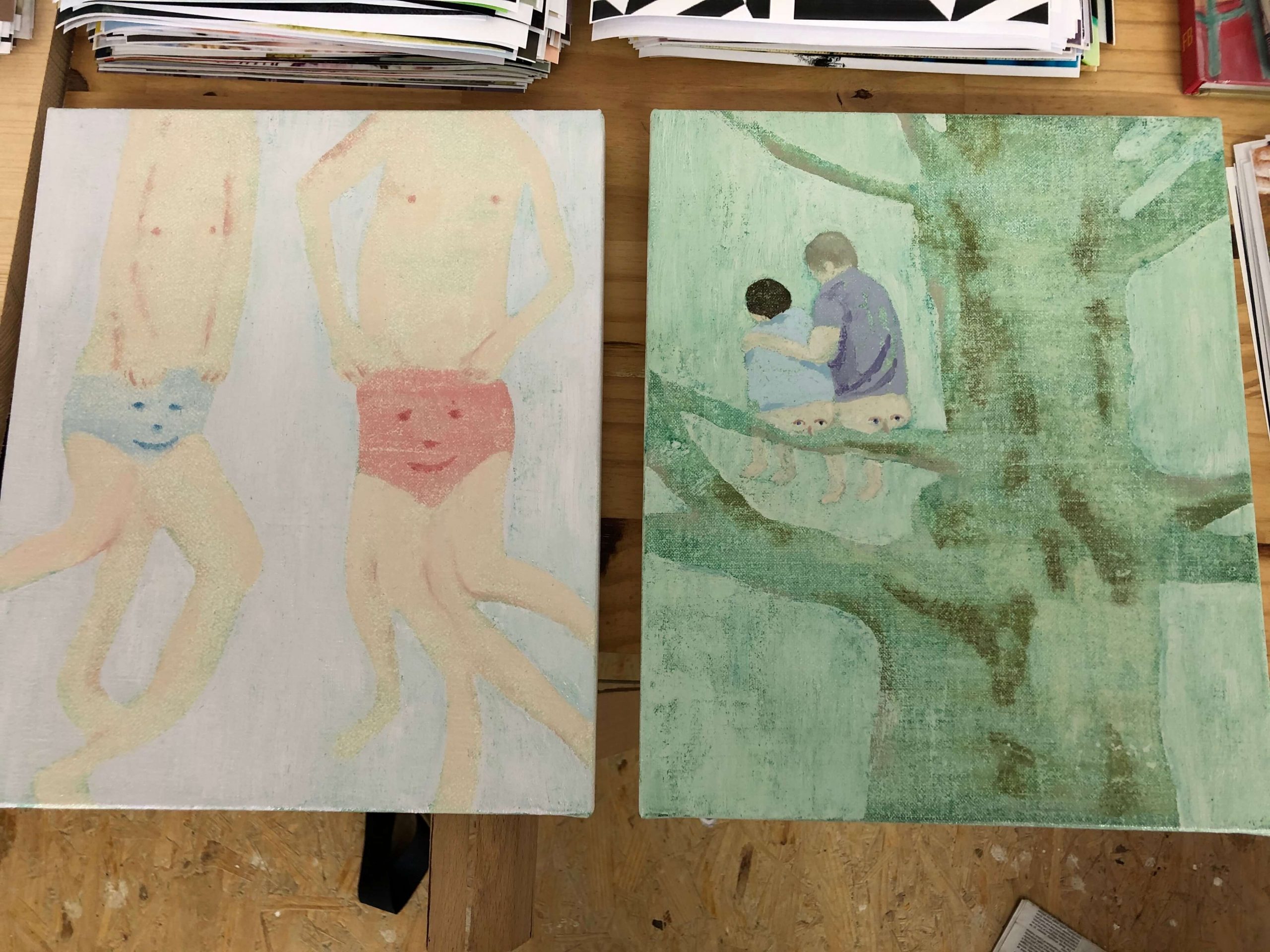 Over the past few years, I have been working with images on paper, printing and watercolour. But recently I have started using oil paint again, on very small paintings.