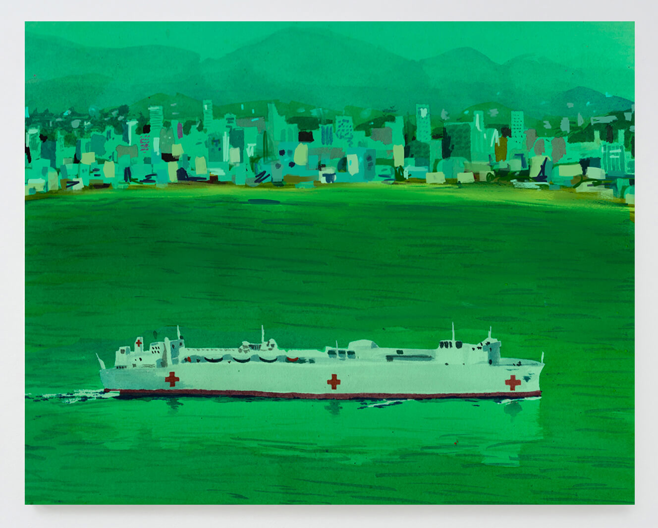 I have been furloughed from my full-time job as an art handler. The silver lining is that I now have abundant time to work in my studio. The California Governor – Gavin Newsom declared a Stay Home Mandate on Friday, March 20th. I have responded to by making a 9”x12” watercolour painting every day the Governor’s Stay Home Mandate is in effect. Most are of mundane but beautiful sights of neighbourhood walks. A few are of more symbolic events, the arrival of the USNS Naval hospital ship the Mercy in Los Angeles Harbor for instance. In total, these paintings serve as a journal, a record of this very unique time from my perspective.