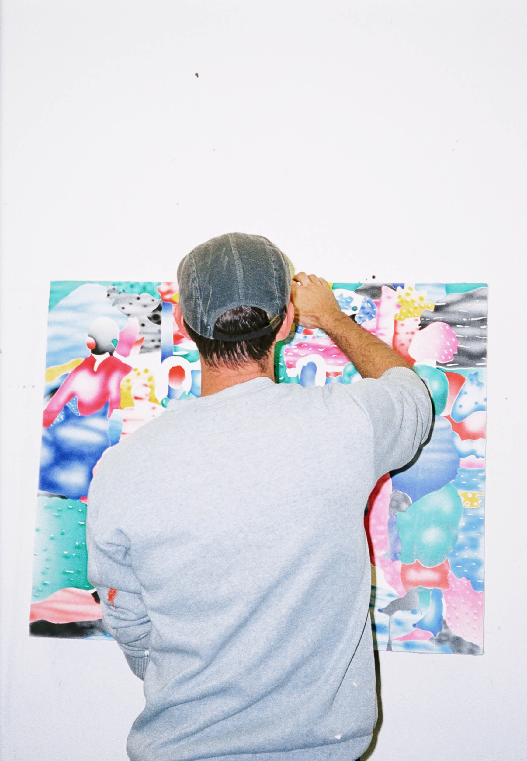 Although not my favourite place, the most common place I think about painting is while driving my car. Living in Los Angeles, I spend a lot of time in my car. During long commutes, I think through paintings, talking to myself through every detail and making voice recordings on my phone. I listen to these recordings in my studio.
