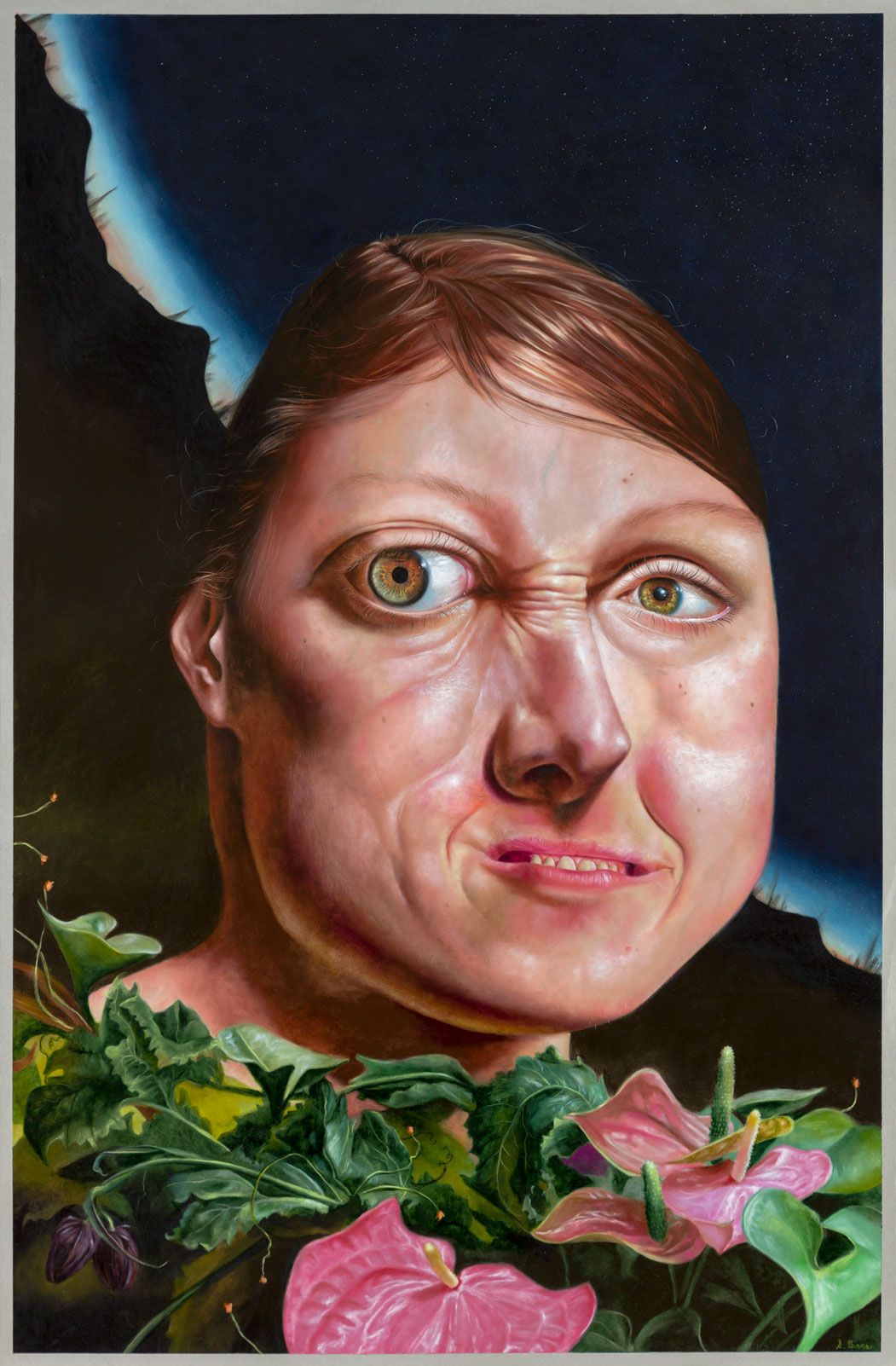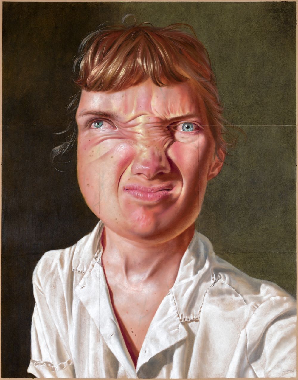 It’s not a painting for the faint-hearted, it’s a full and rich expression engaged in a close-contact fight with digital photography. The effects of the contemporary medium that we are going accustomed to like unfolding of the figure, character blur, lens-induced disproportion or sharp-as-fuck focus are combined to create a sublime painting.