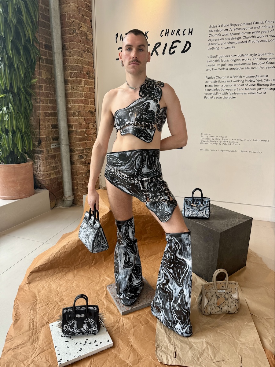 Patrick Church has finally come home, and he’s not packing light. From 16–19 September 2025, the UK-born, New York-based artist and designer took over the Solus showroom in Clerkenwell, London, with “I Tried”, a four-day exhibition curated by art collective Gone Rogue. It’s his first-ever UK solo show, and spoiler: it was perfectly messy, emotional, and downright fabulous.