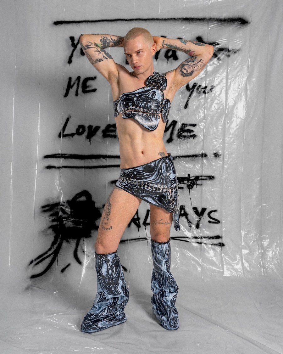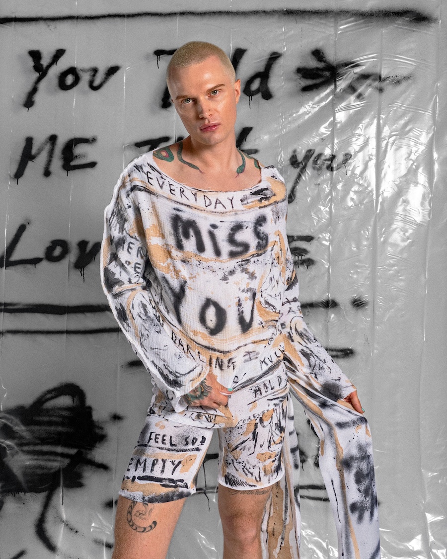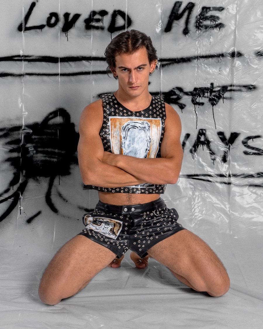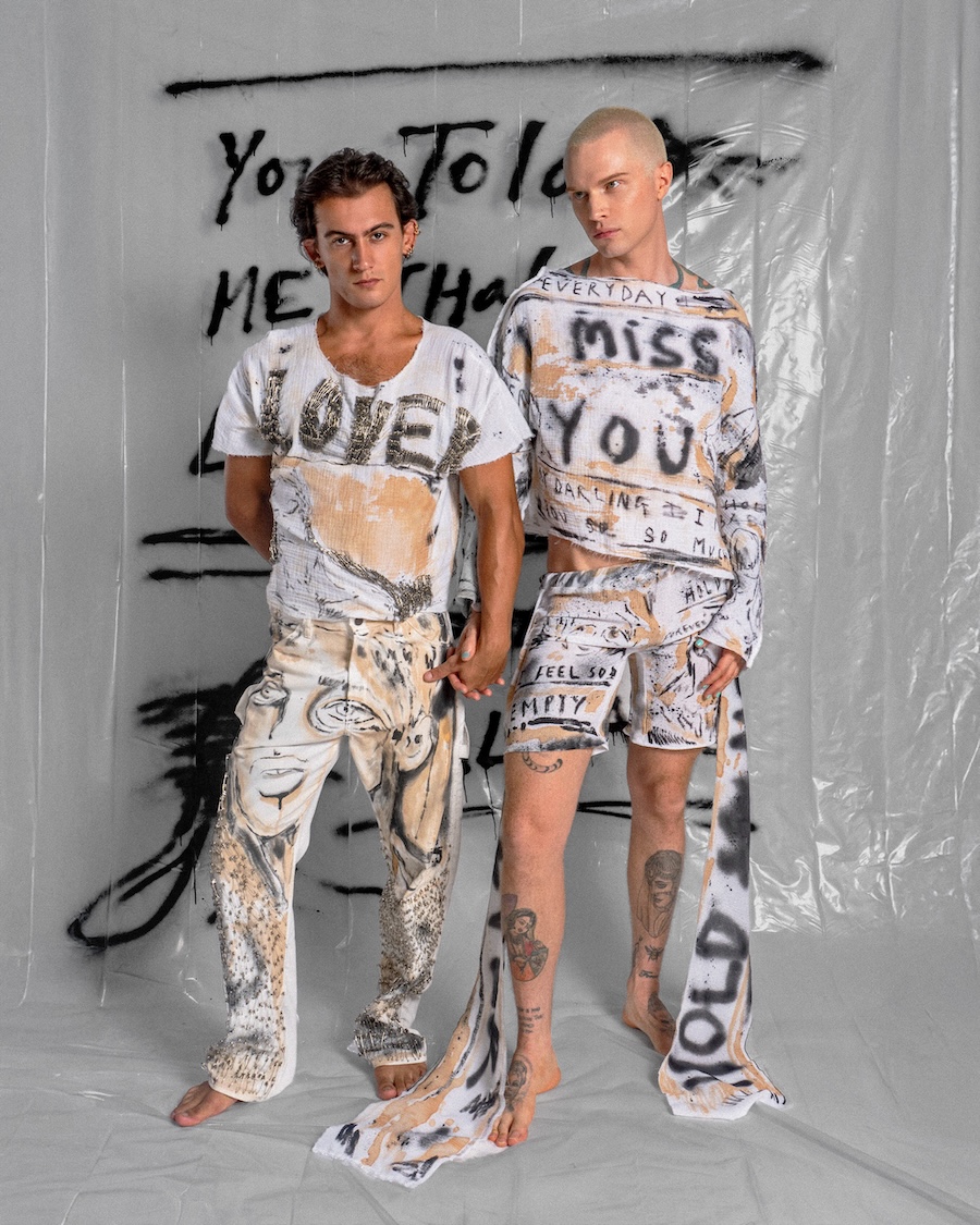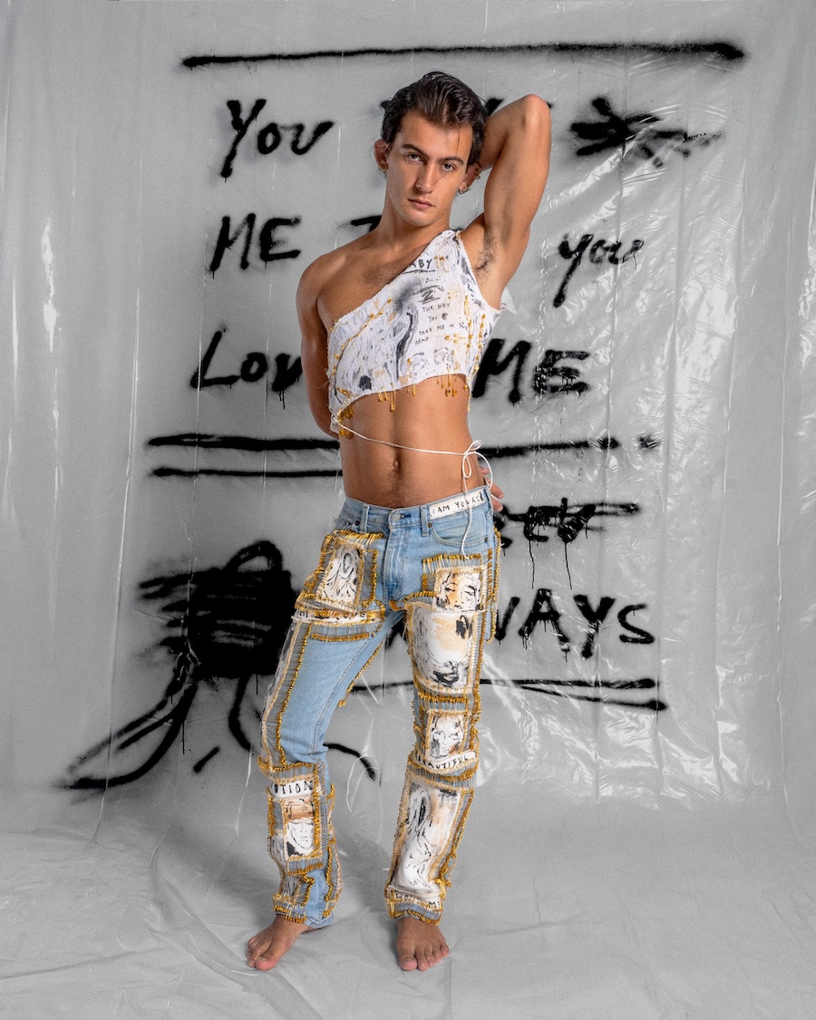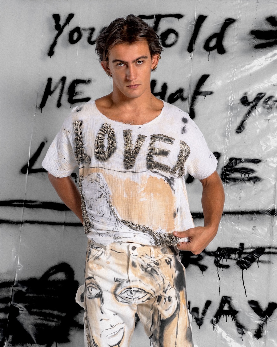Church has spent the last eight years turning survival into style, painting on bodies, clothes, canvases, basically anything that doesn’t run away. His work is raw, diaristic, and drenched in sincerity. He’s shown internationally (most recently at Soho House Miami with Poolside Paradiso), dressed celebrities, and become a cult figure for a queer generation who live fearlessly in his hand-painted pieces. Now, London finally gets the retrospective it deserves.