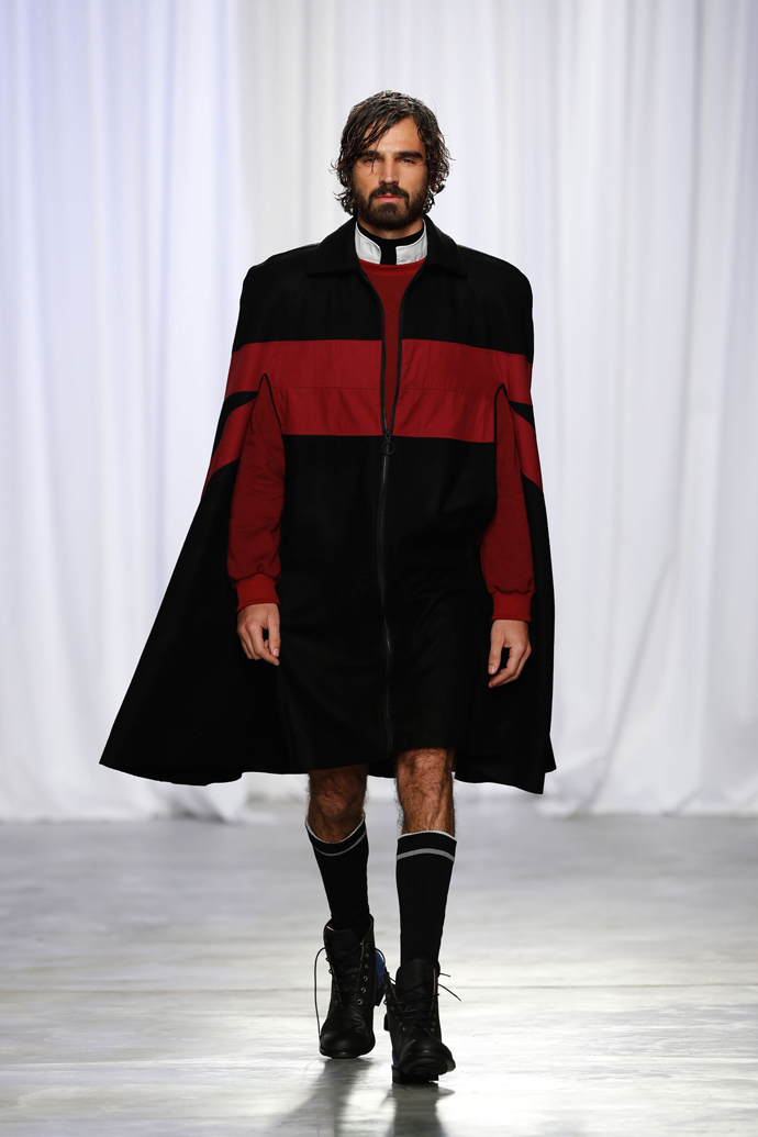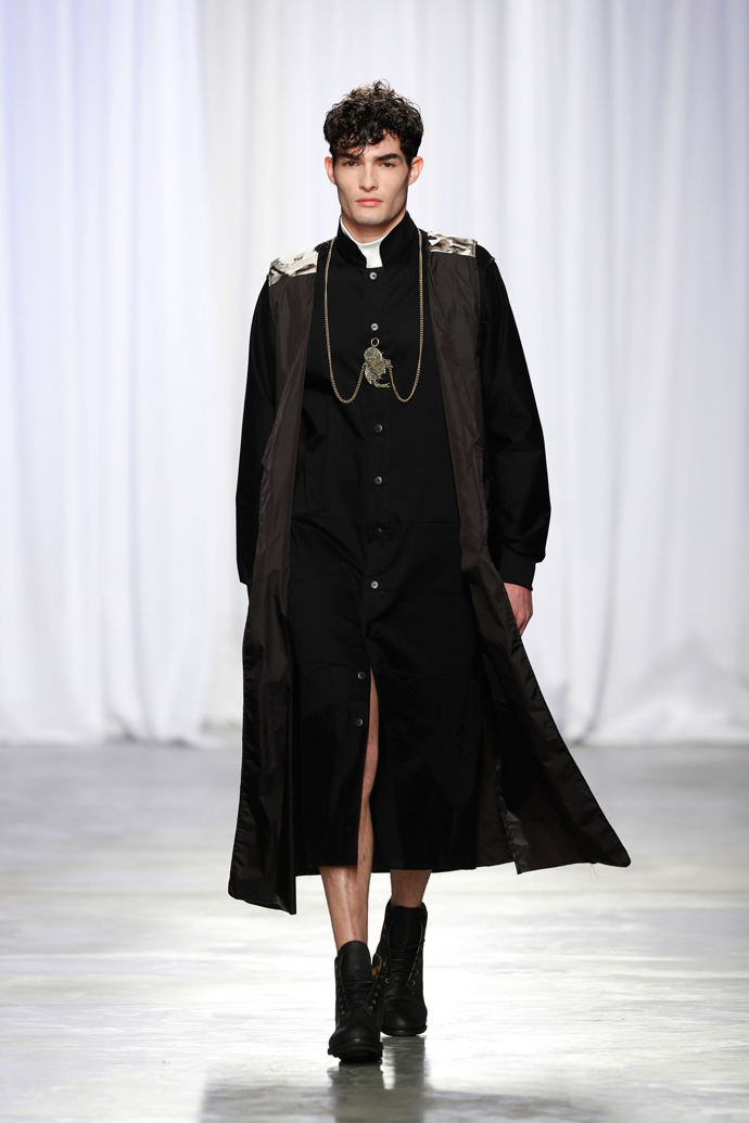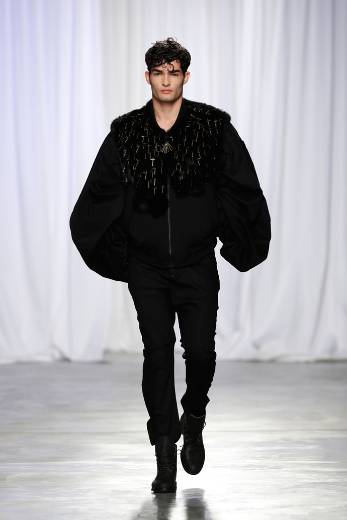 ModaLisboa FW17/18 – #Boundless! KALTBLUT Magazine Award winner 2015 Patrick de Pádua unveiled his new FW 17/18 menswear collection: WEAPON OF LIFE! From all the collections I have seen during the fashion fest in Portugal Patrick de Pádua´s collection was the most cohisive collection on the catwalk. With a great colour line from black to white to blue to bordeaux and green. Using fabrics like fur, knitwear and neonprene. With military elements and a streetwear concept, the collection is developed through a long silhouette and overlays. This collection expresses precisely these innumerable forms of struggle and expression full of personality that are present in every detail of each look. “I’m not proud of the battle, but of my fighting spirit.”! We love it. Watch the full runway show below. All photos by Rui Vasco.