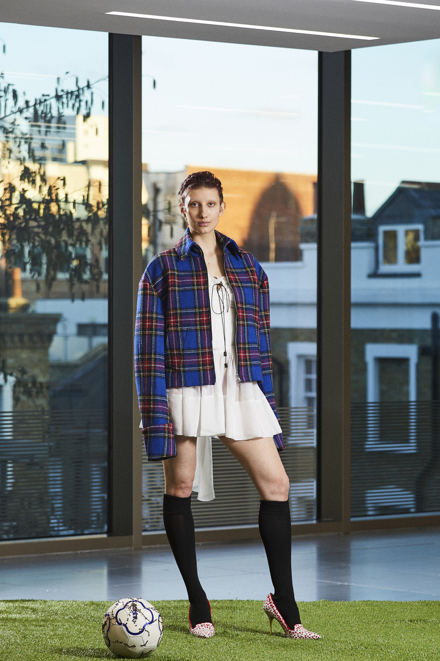 This season, in a retelling of Cinderella’s story intertwined with Patrick’s own sustainable fantasy, we are brought a new collection. A tale reimagined and retold – ‘Cinderella Shall Go to the Football.’ Furthering their celebration of strong women, McDowell has combined the opulence and magic of Cinderella with culturally iconic sportswear. Putting the Femme into Football, the Princess will dazzle on the turf; in Swarovski jewelled boots and regal silhouettes. McDowell brings the fandom of Liverpudlian glamour to make the belle of the ball. I had a chat with the designer about the new collection: