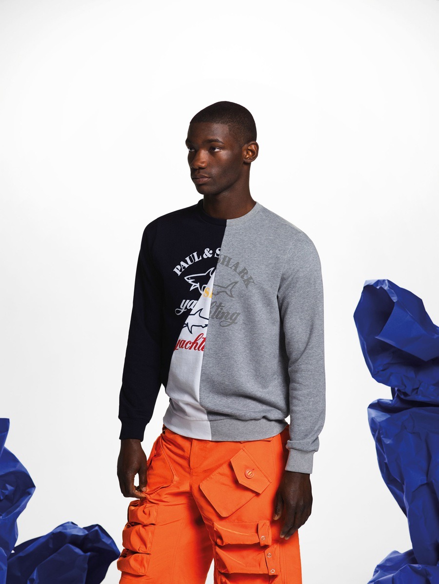 The collaboration between Paul&Shark and Nick Wooster came from the desire to increase the brand’s influence among a more fashion conscious clientele. The concept was for him to work on the brand’s iconic products and make them unmistakably his own. Paul&Shark’s trademark blue woollen sweater, with buttons on the shoulder, has been resized and made from nylon with fluorescent details.