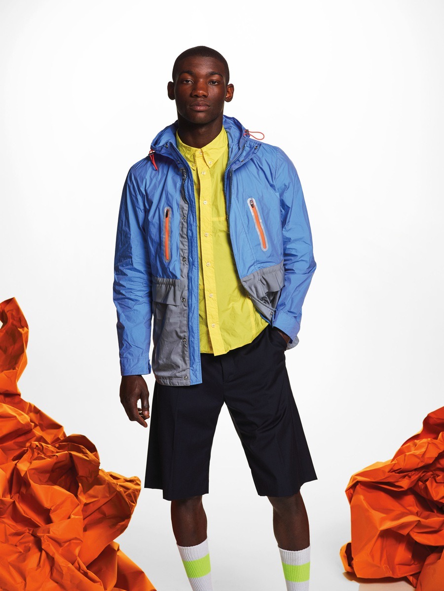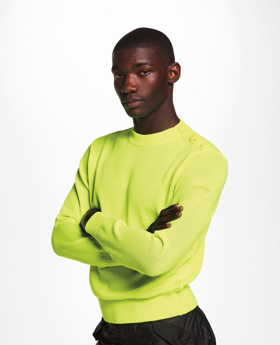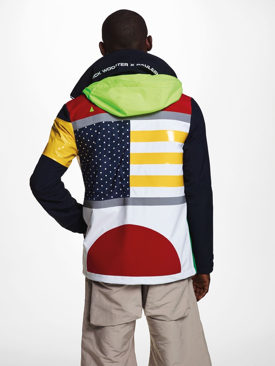 The collaboration between Paul&Shark and Nick Wooster came from the desire to increase the brand’s influence among a more fashion conscious clientele. The concept was for him to work on the brand’s iconic products and make them unmistakably his own. Paul&Shark’s trademark blue woollen sweater, with buttons on the shoulder, has been resized and made from nylon with fluorescent details.