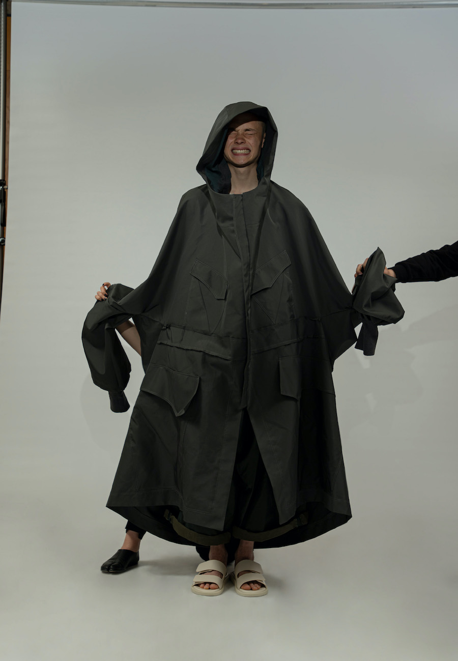 A KALTBLUT exclusive. Photography by Darren Black. Model is Tom Sprott signed at Select Model Management London. Styling & Creative Direction by Laura Sanamova. Inspired by the Japanese aesthetics of Wabi-sabi, demonstrating the beauty of imperfection and incompleteness, the narrative underlying the concept is developed as a shooting that seems unprepared, and the outcome actually looks not at the final stage, but rather like behind the scenes. Besides the atmosphere, the idea also evolves in terms of styling with extra oversized garments, which looks unsuitable to the model’s parameters.