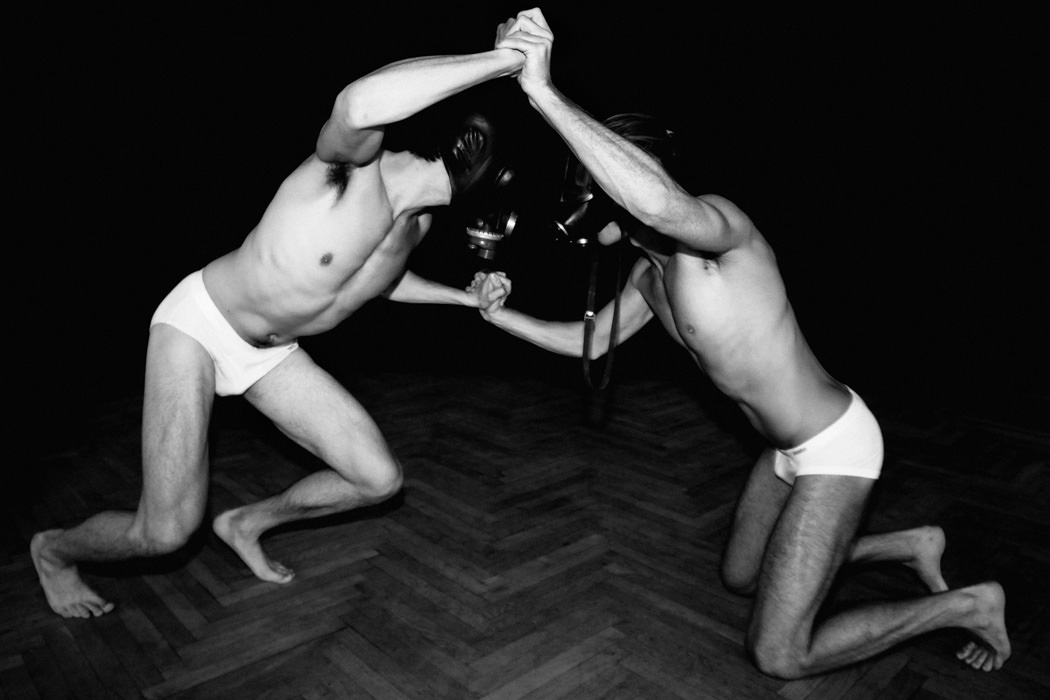 Creative Director and photographer Pete Lamberto realised this stunning serie: “While we wait Part II“. The series depicts and portrays young men experiencing fragments of the fetish scene, alone and with others, wearing gas masks, wrestling gear, … Allowing themselves to free their curiosity thus creating a somewhat sexual alter ego, before the reality of adulthood sets in.
