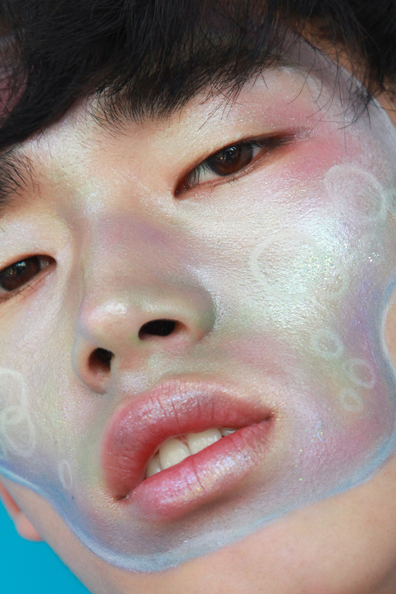 A KALTBLUT exclusive. London based makeup artist Rachel Freeman, draws inspiration from Disney’s “Ariel The Little Mermaid’, In this forward thinking mens makeup story inspired by contemporary London designers collectors such as Bobby Abley. Captured by Karl Slater, styling Kennedy Silver, Model Jae Kim signed to NEVS. Wearing Lydia Bolton and Andy Mayor.