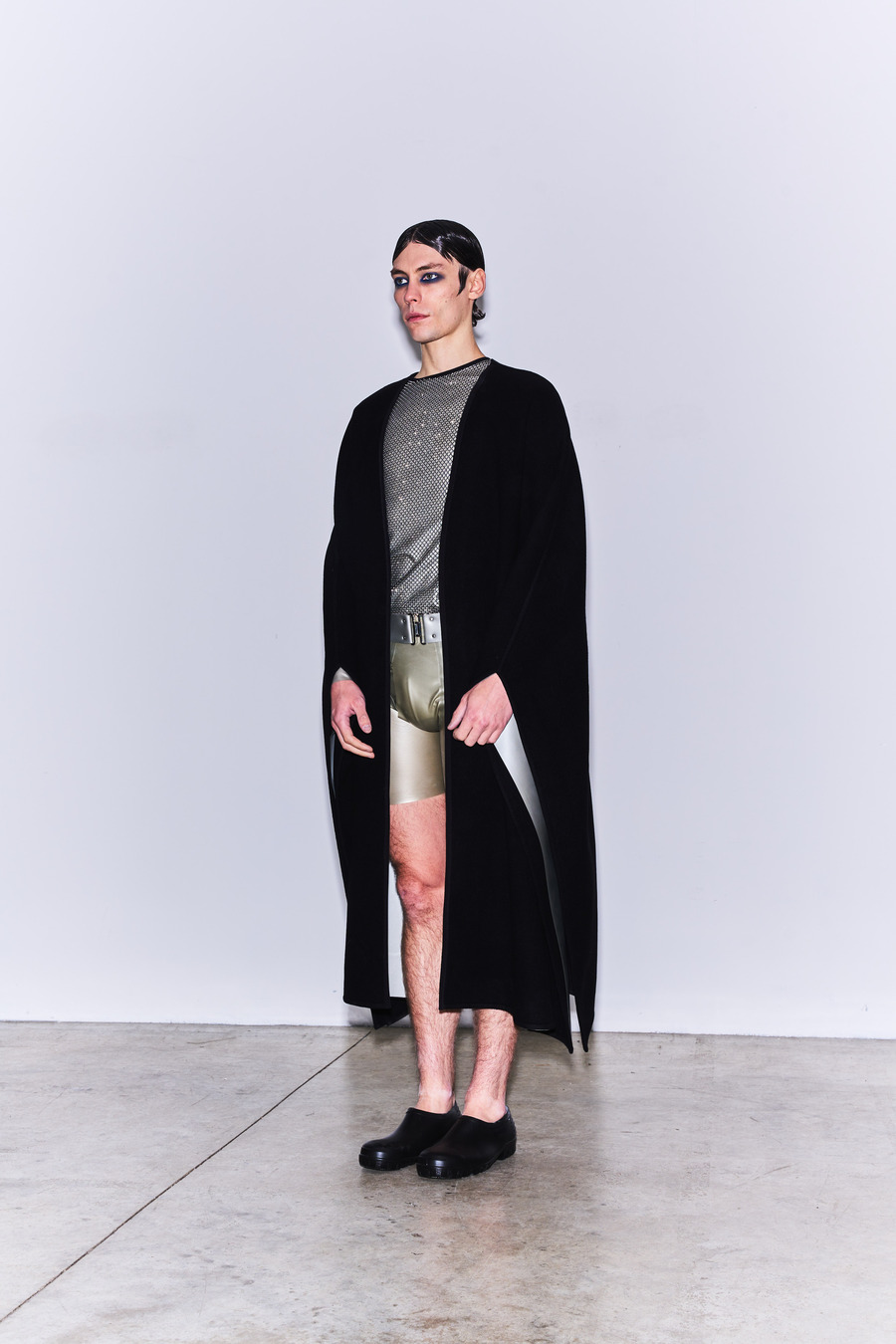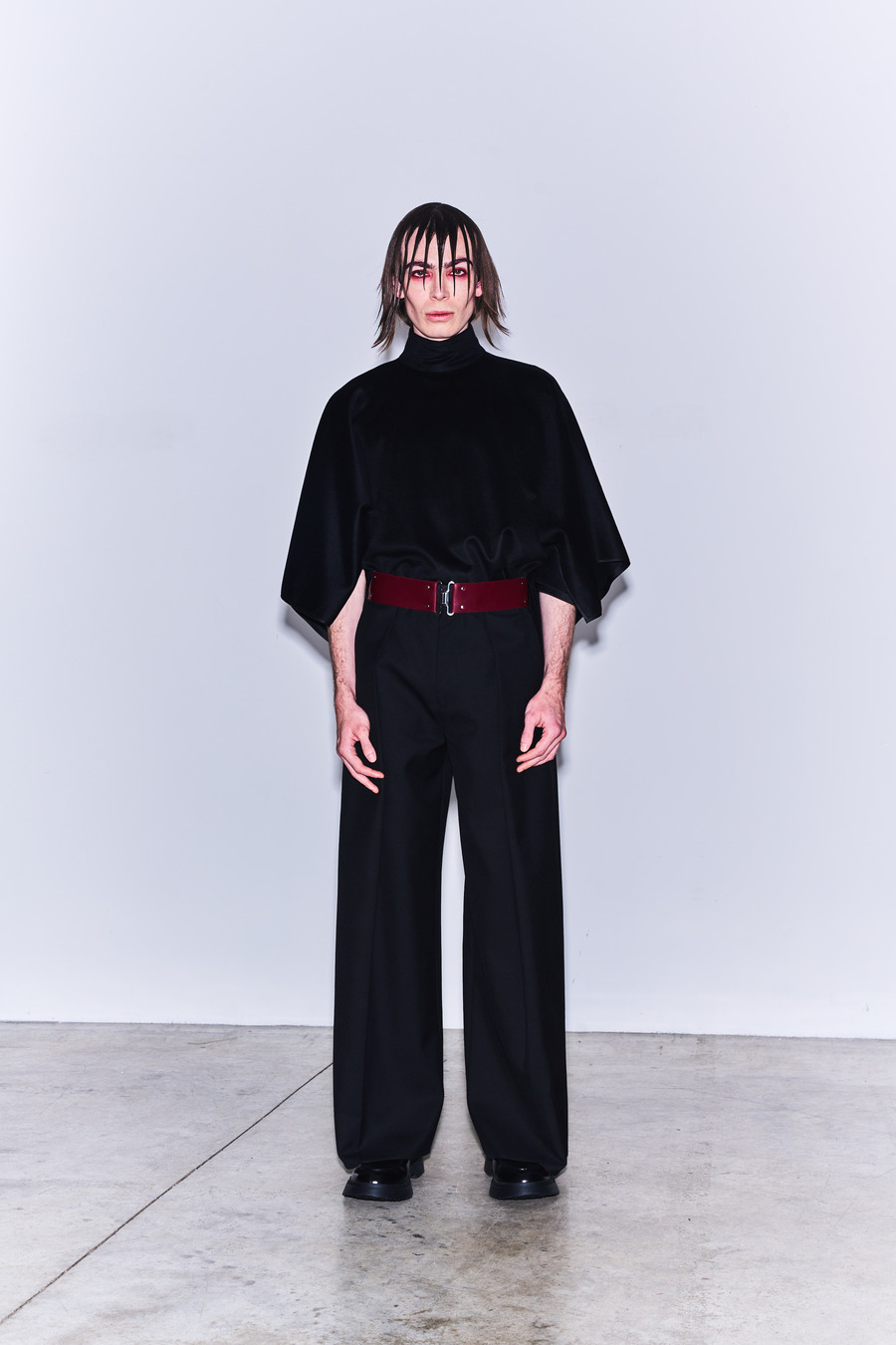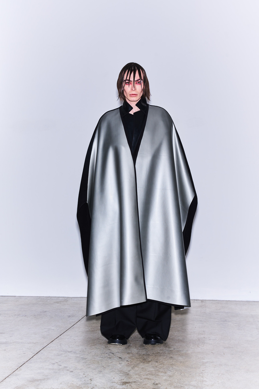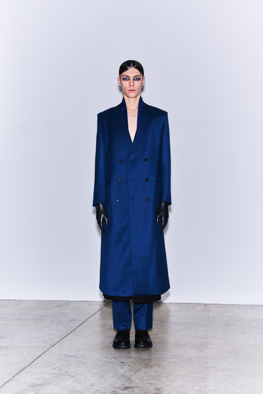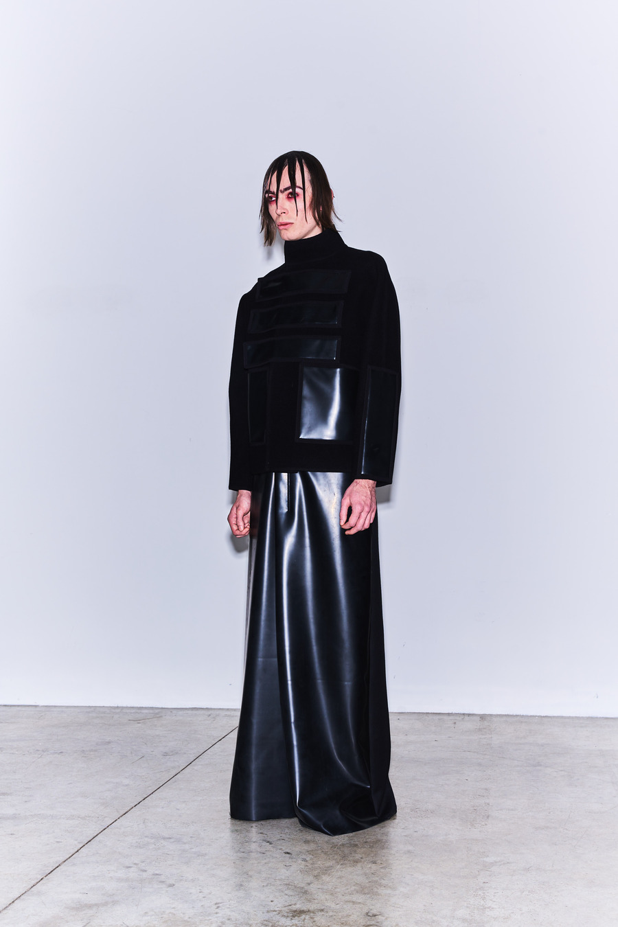 As if in a choreographed ballet of utilitarian structure and ornate expression, the Philipp Dorner AW24 collection carves out its niche. It channels the spirit of spatial exploration to its zenith, transposing the dynamism of dancers’ postures into sartorial blueprints. Straight-cut panels alone are entrusted to construct the collection’s volumetric silhouettes, orchestrating a space where fabric and form merge.