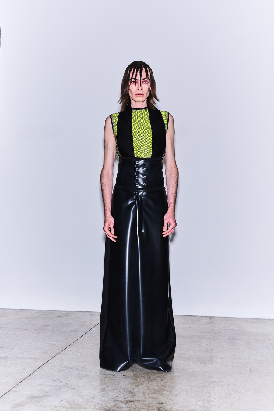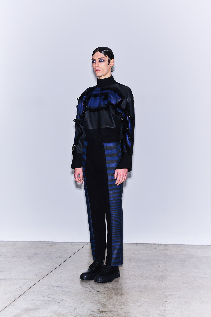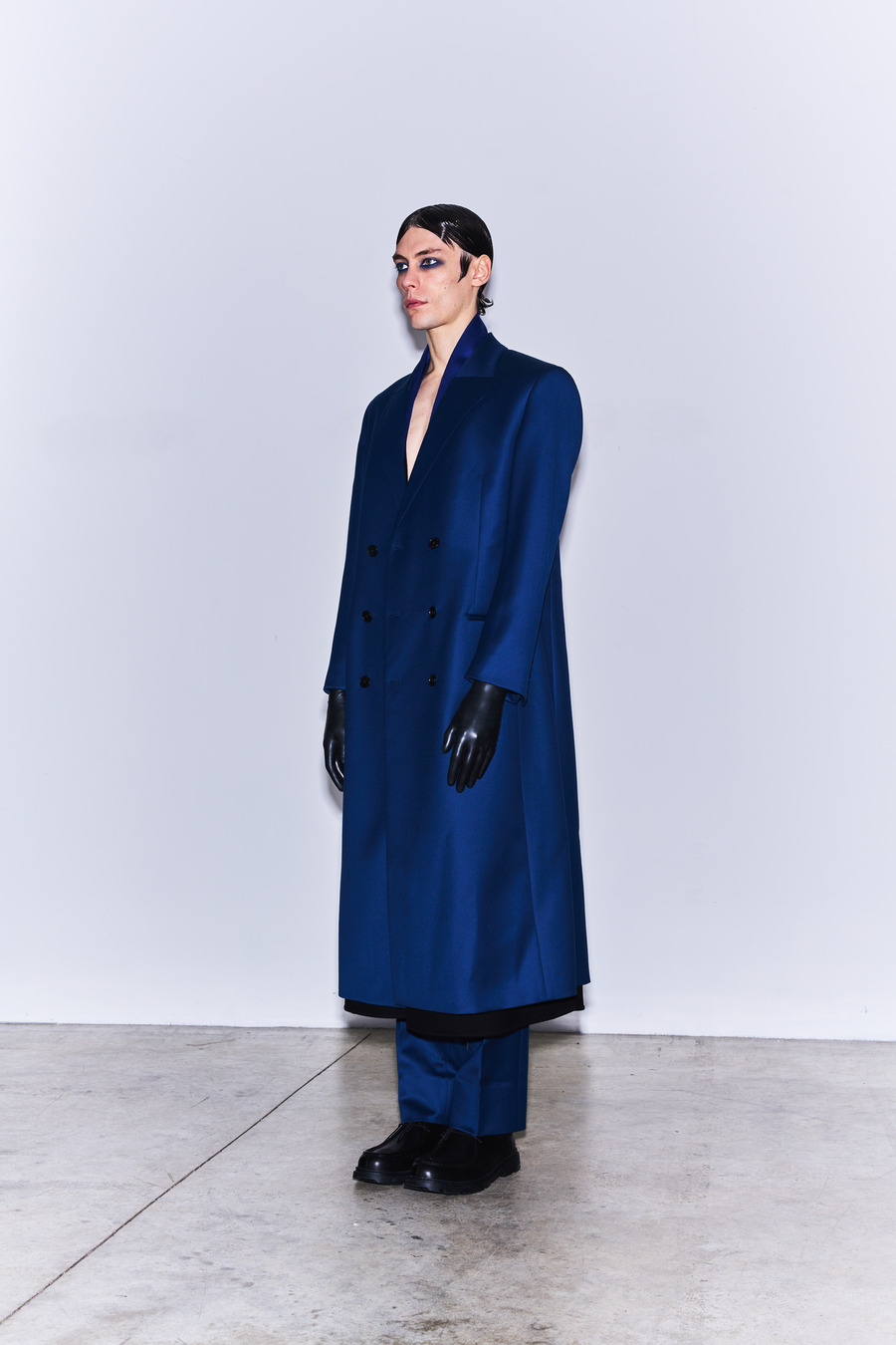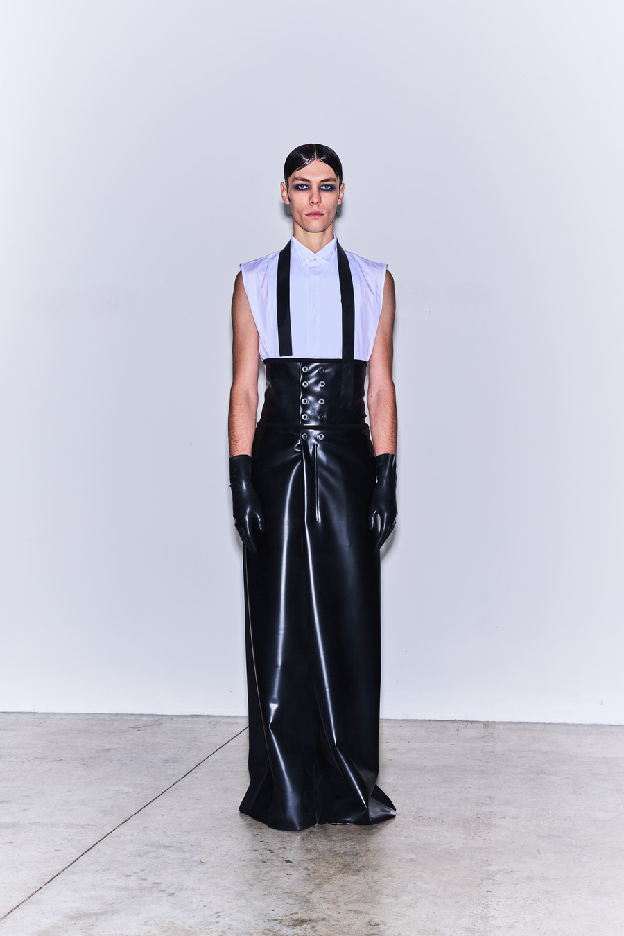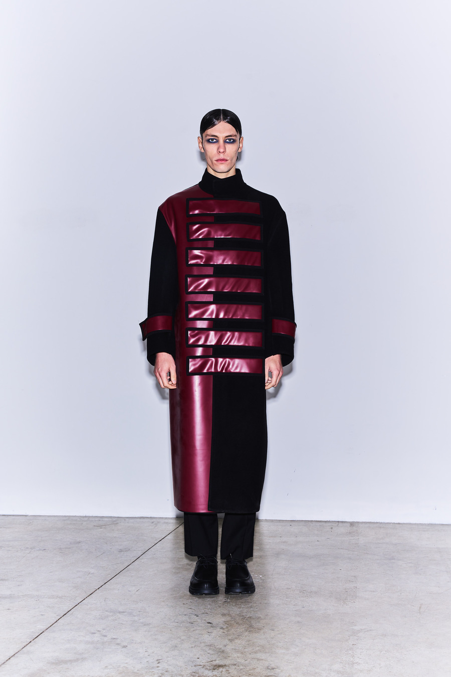 As if in a choreographed ballet of utilitarian structure and ornate expression, the Philipp Dorner AW24 collection carves out its niche. It channels the spirit of spatial exploration to its zenith, transposing the dynamism of dancers’ postures into sartorial blueprints. Straight-cut panels alone are entrusted to construct the collection’s volumetric silhouettes, orchestrating a space where fabric and form merge.