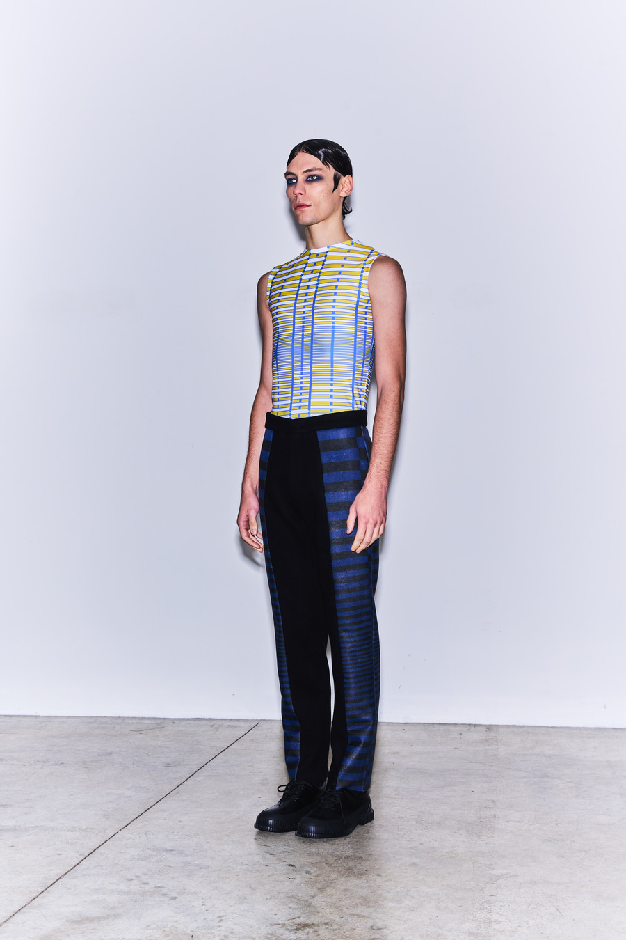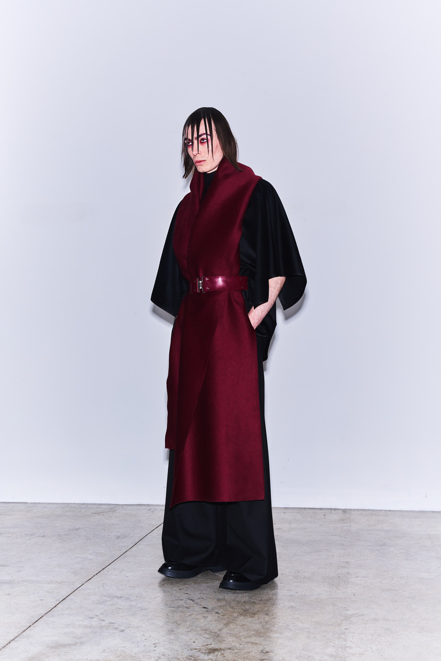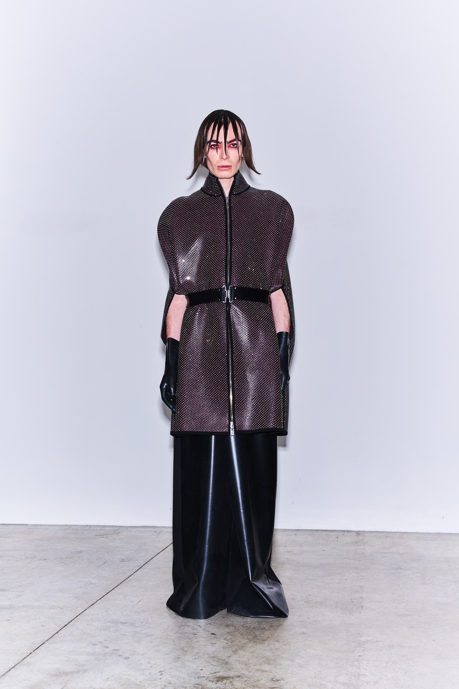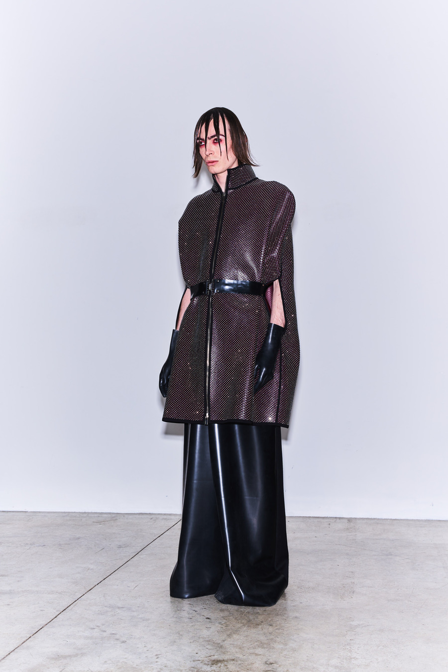 Drawing inspiration from the minimalist and functional marrow of Bauhaus philosophy, Dorner’s Autumn/Winter line forges an intimate dialogue with contemporary dance’s expansive gestures and opulence, subverting the iconic ‘Less is More’ doctrine. It marries minimalist sharp geometry with sumptuous embellishments and masterful textile craftsmanship, moulding an unexpected kinship between simplicity and luxury.