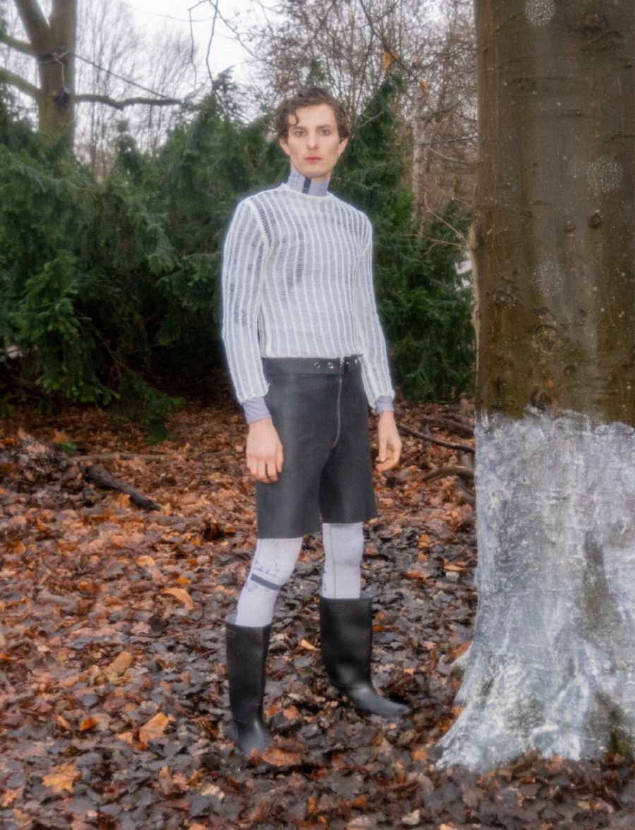 Queerness was still being seen as unnormal in Germany amongst all the political unstableness. The story is also distinguishing the 80ies gay stereotypes which have been the reason to not accept homosexuality in most societies. The concept was to defetishizing garments and materials such as Latex, full-body suits and fishnet, which have formerly been used for fetish purposes. By using different techniques and fabrication layering for every piece we could create solid characteristics and celebrate the variety of diversity of every garment.
