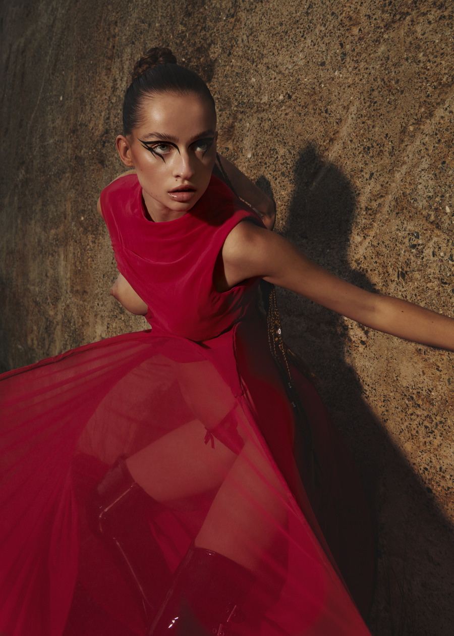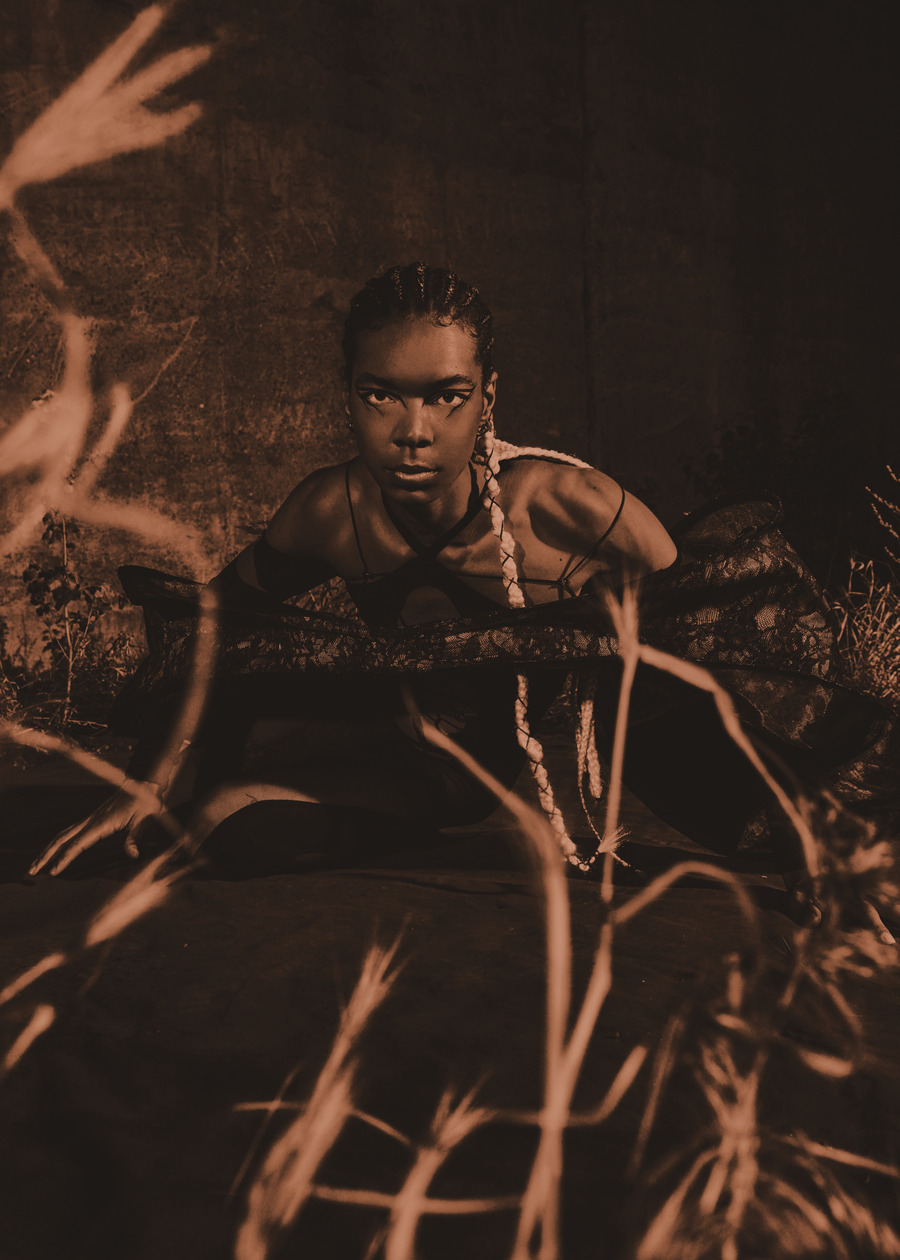 A KALTBLUT exclusive. Photography by Paula Nietner. Styling by Kira Sarem. Setdesign by Pelin Gebhard and Caio Nagle. Make up & hair by Eleonore. Models are Alto signed at Izaio Management, Alexia, Mutha, Alexia, and Roben. Light assistant by Nithu and Shanaly. Digital Operator by Dhana Sabira. VFX by Shanaka Kamesh.