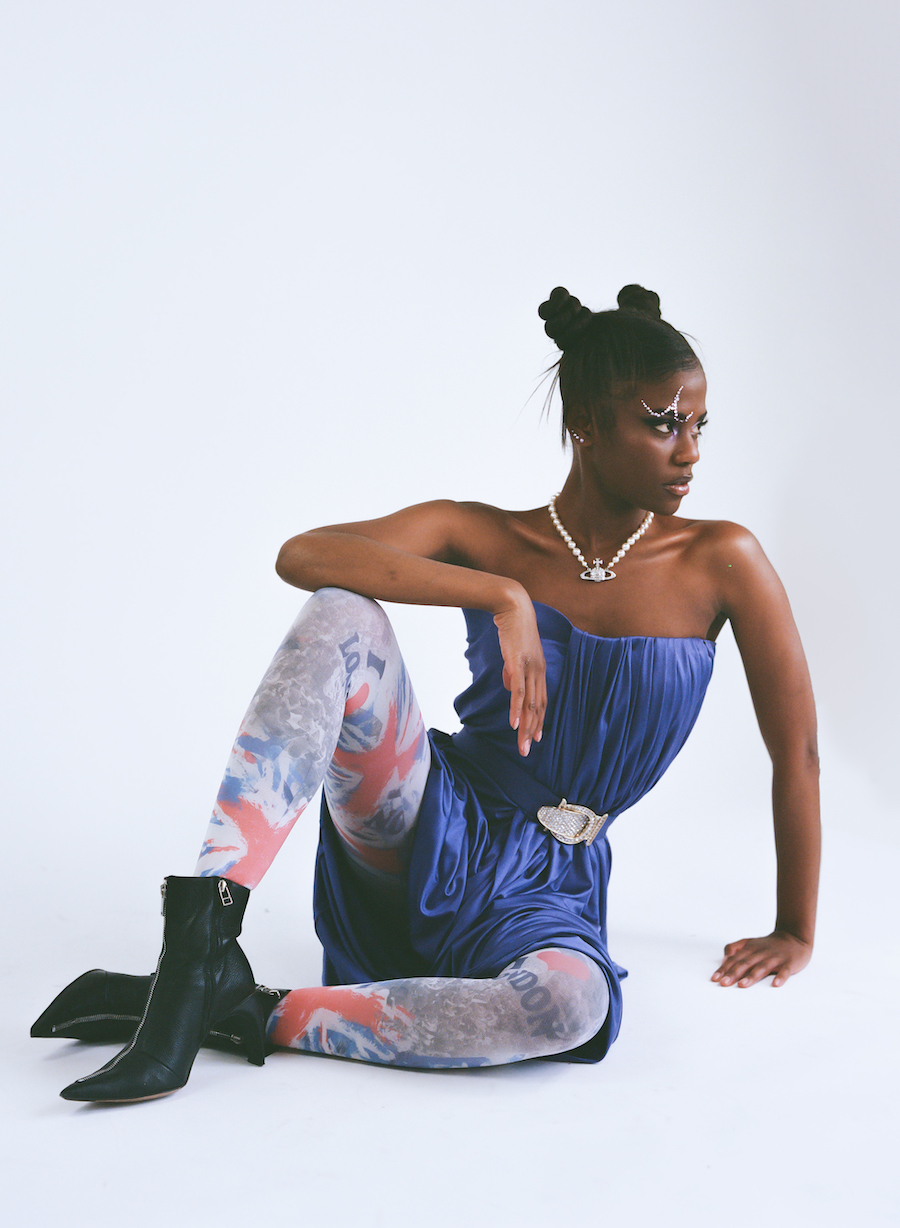 A KALTBLUT exclusive. Photography and Creative Direction by Alex Radota. The model is Tameisha Edwards. Styled by Zlata Mechetina. Hair by Toni-Ann Malcolm. Make up by Mia Beckhelling. Brands and designers used are Neon Lee, Simone Rocha, Found and Vision, Naked Wolfe, Blumarine, MISBHV, Vivienne Westwood, Comme des Garçons, and Damla Urun.