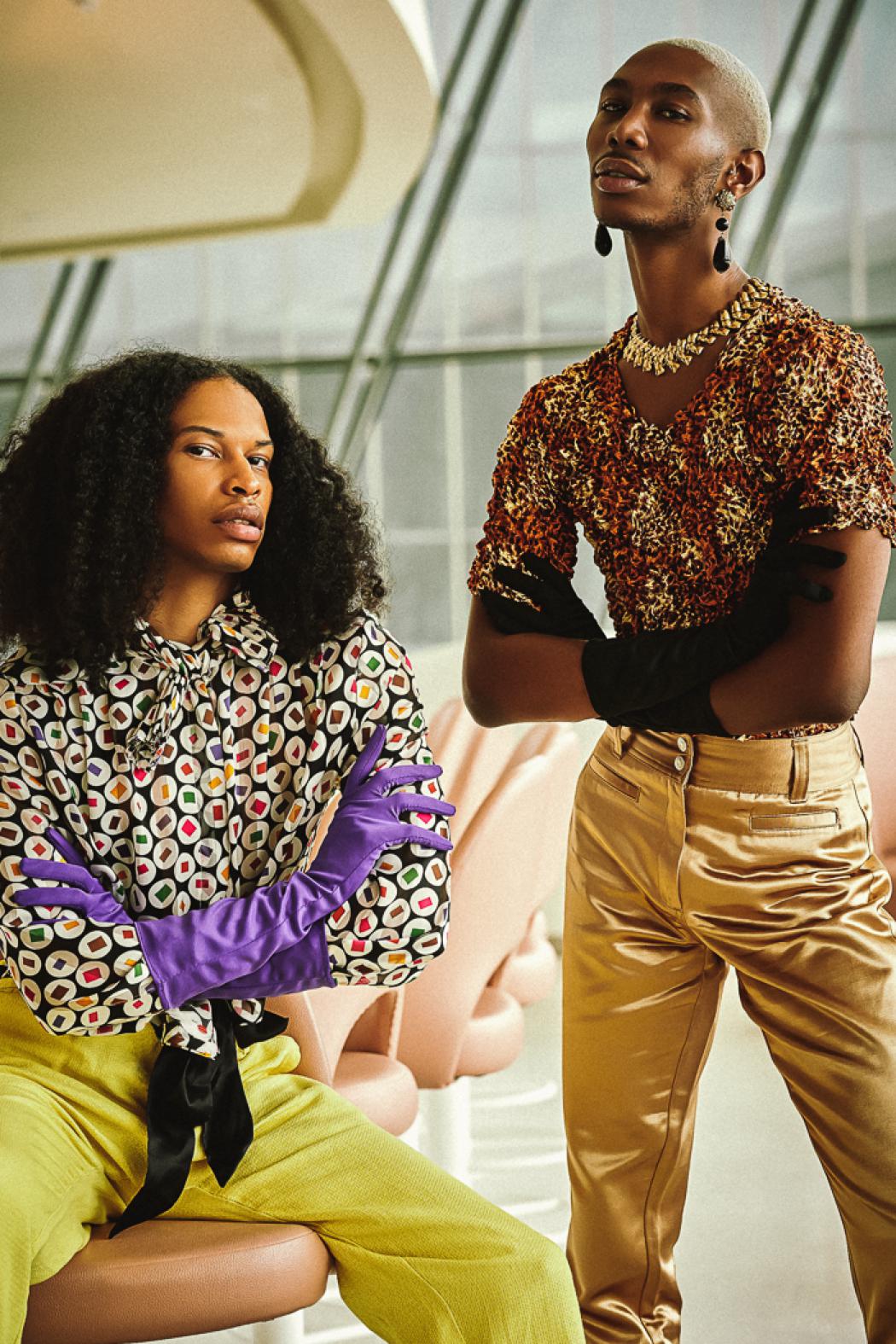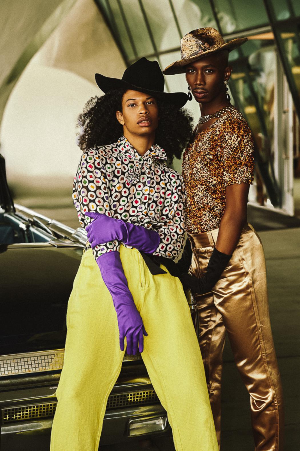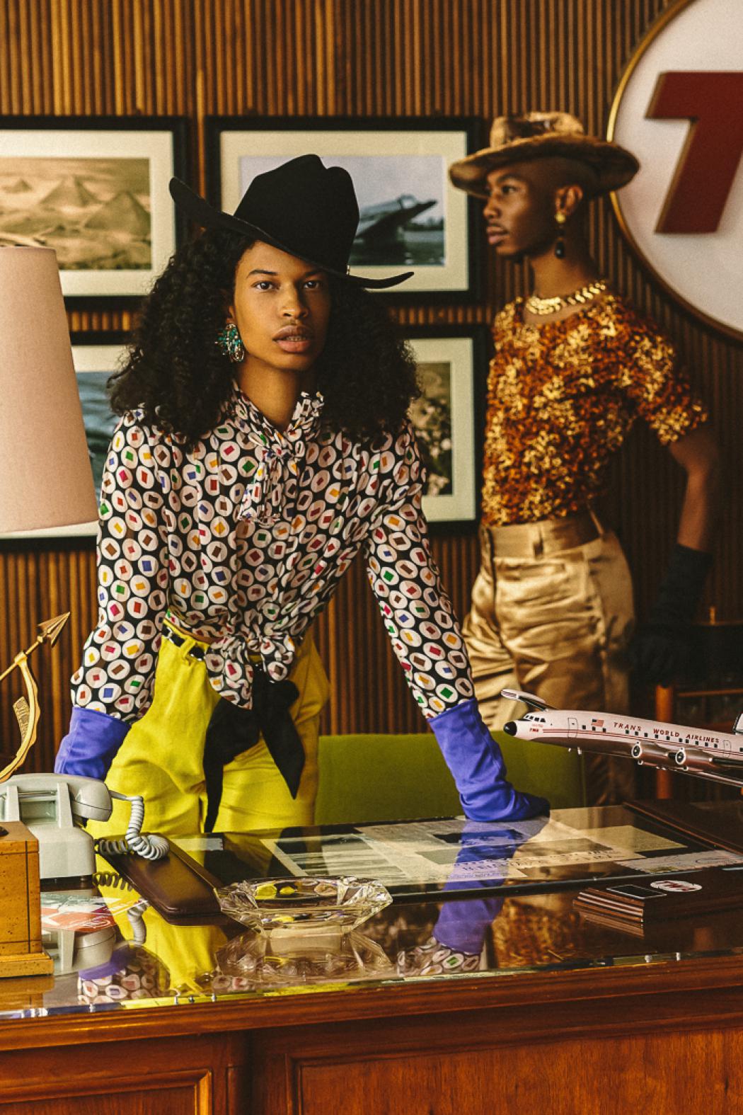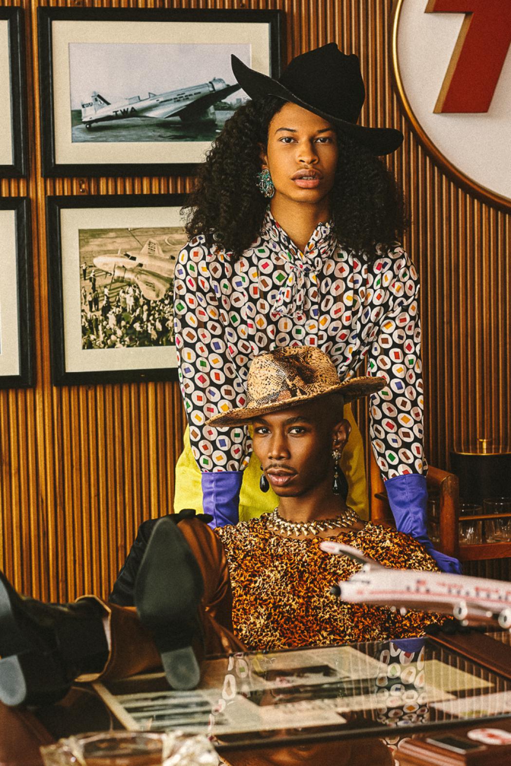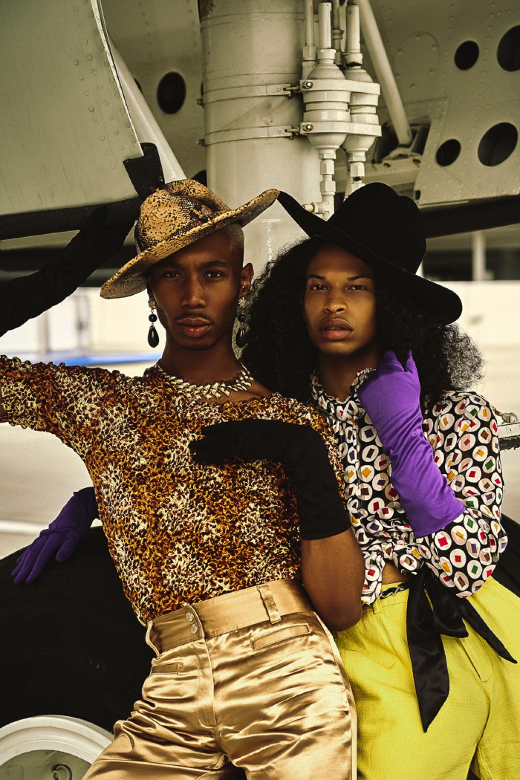 A KALTBLUT exclusive. Anthony Buford is a portrait photographer based in Chicago, USA. As his introduction to Fashion Photography, this shoot is apart of his “Blaque Style” photography series that highlights various lifestyles of Black, Queer men in unique hotel settings. Shot inside the infamous vintage, TWA Hotel in New York City by JFK airport—the theme of this shoot was inspired by the book “Plane Queers” which highlights sexuality, and the history of male flight attendants. Models are Donovon Alexander and KeiMante Wright.
