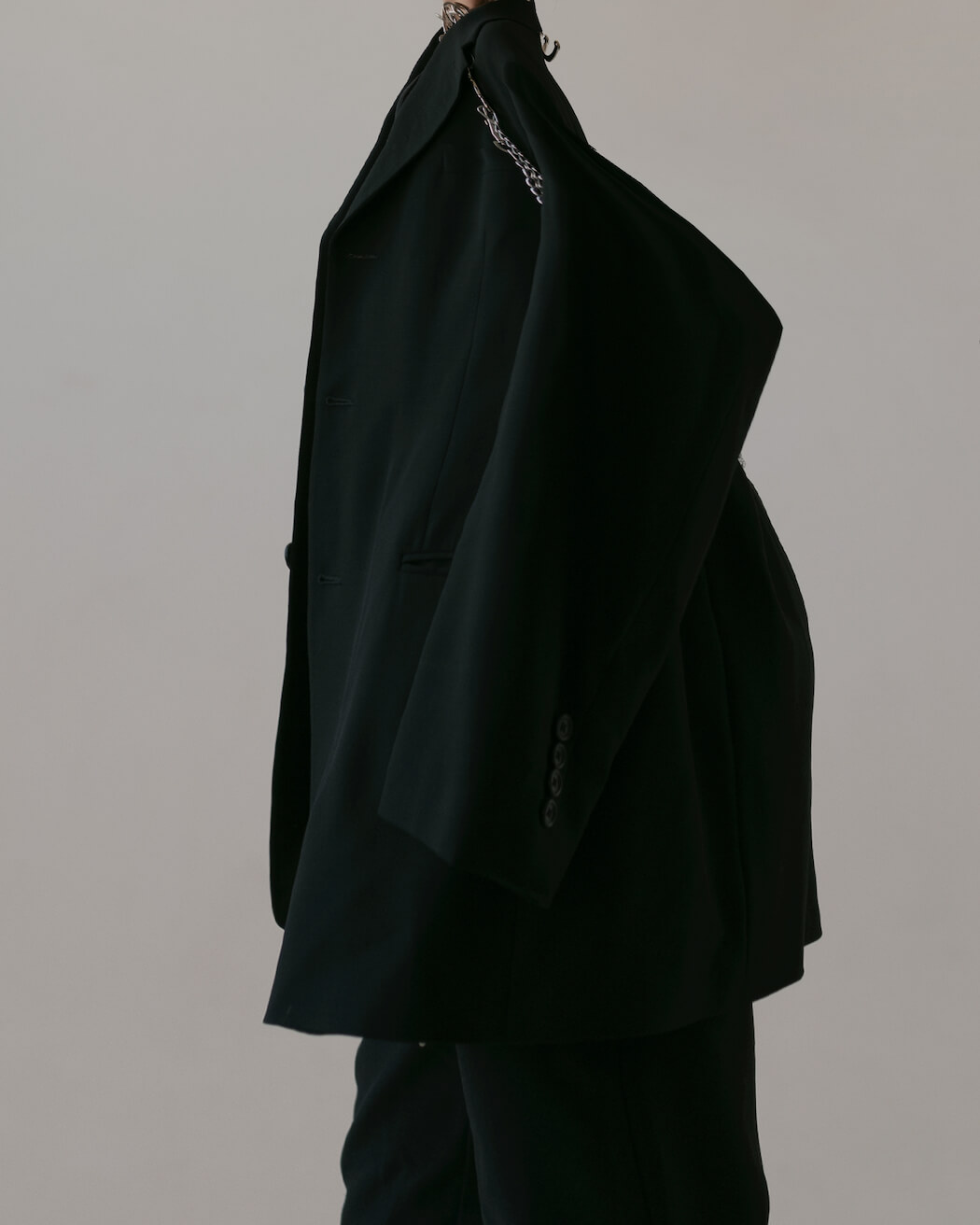 Pieces featured in this editorial, such as the coat check blazer, Fecal Dior choker, double white dress shirt, and hardcore bikini top are by Canada-based Designer Fecal Matter. Joebert Tupas – the photographer, has often featured Fecal Matters’ work in his photoshoots. Fecal Matter is known for its provocative nature and over-the-top designs. Joebert has had issues expressing himself in his past because of the conservative environment he was raised in his home country of the Philippines. Designers like Fecal Matter, who challenge societal norms and embrace taboos, inspire many young artists such as Joebert to have the courage to express how they feel through their art.