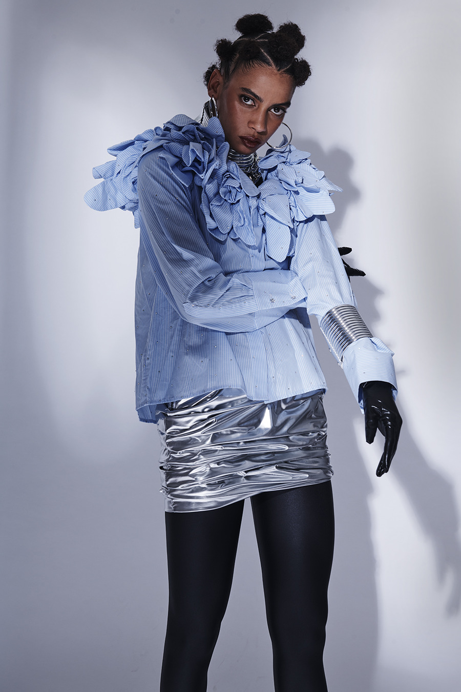 A KALTBLUT exclusive. Photography by Stephan Ziehen. The model is Monica Baute. Hair by Jesus Rodriguez for Oribe. Make-up by Mai Anh Rudolph. Styling by Daniel Blechman using Adddress Published By, Danny Reinke, Frenken, Maria Chany, Kilian Kerner, Glück, and United Nude to name a few.