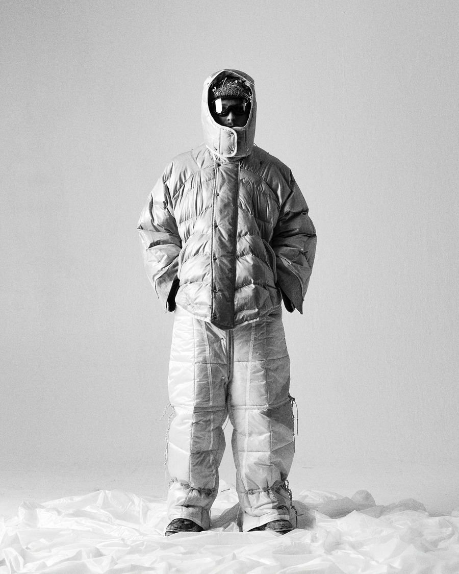 A KALTBLUT exclusive. Photography by Jonas Glanz. Assistance by Noera Roberg. The models are Savio and Edin Balijagic. All fashion by Jana Przibylla – Jylla. “This project was created as part of the Master’s program in Fashion Design and explores innovative approaches to functional and sustainable design. The outfits are made from an upcycled paraglider and present a fictional scenario addressing how to handle extreme weather conditions. Scenario: outdoor temperature: -20°C and indoor temperature: 25°C”