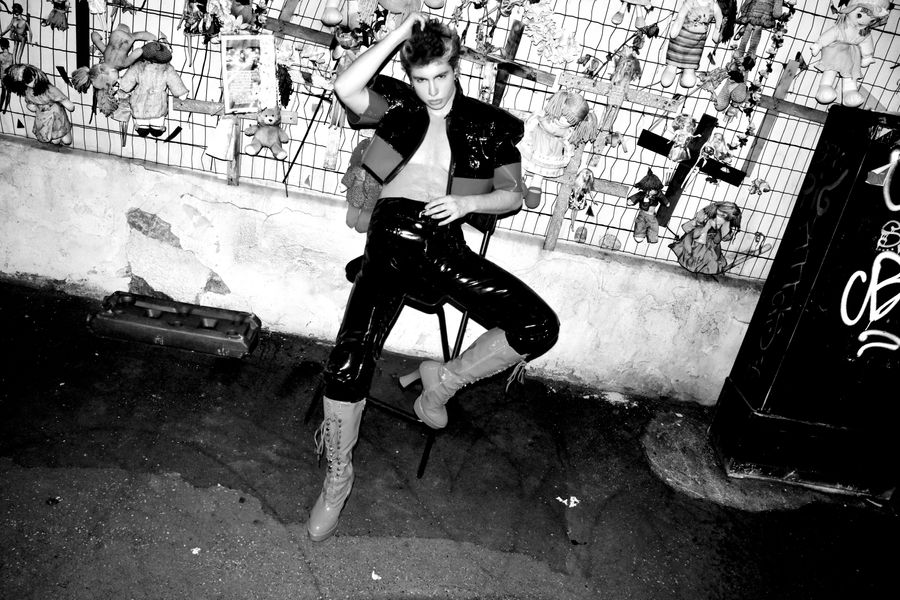 Matteo Carlomusto says about the editorial: This a project made by Margareta Moen, a portrait photographer of the gothic scene of northern Italy and a very young FTM model Ian, an aspiring tattoo artist. Margareta Moen shot this editorial together with Ian, entirely dressed in clothes from my latest collection “Porn Couture”. The shooting, which takes its name from the subject, was created this summer in Milan.”