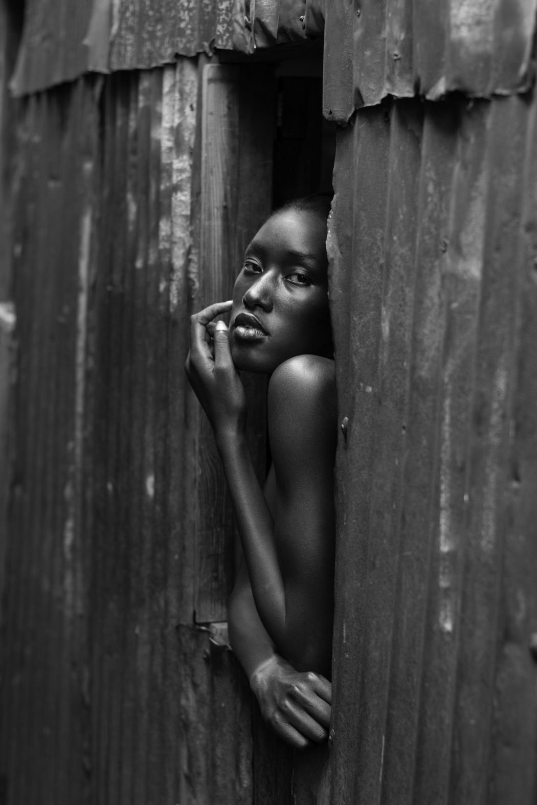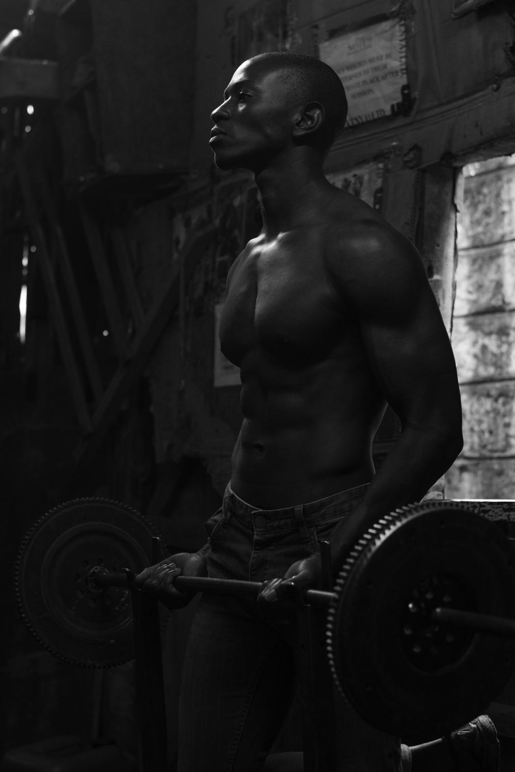 A KALTBLUT EXCLUSIVE. Photographer Justin Anantawan created a portrait series of models Stephen Juma and Elizabeth Achol. This love story in black and white was shot at a gym in the Baba Dogo slum of Nairobi, Kenya. Styling and makeup by Akidor Itoo Doye.
