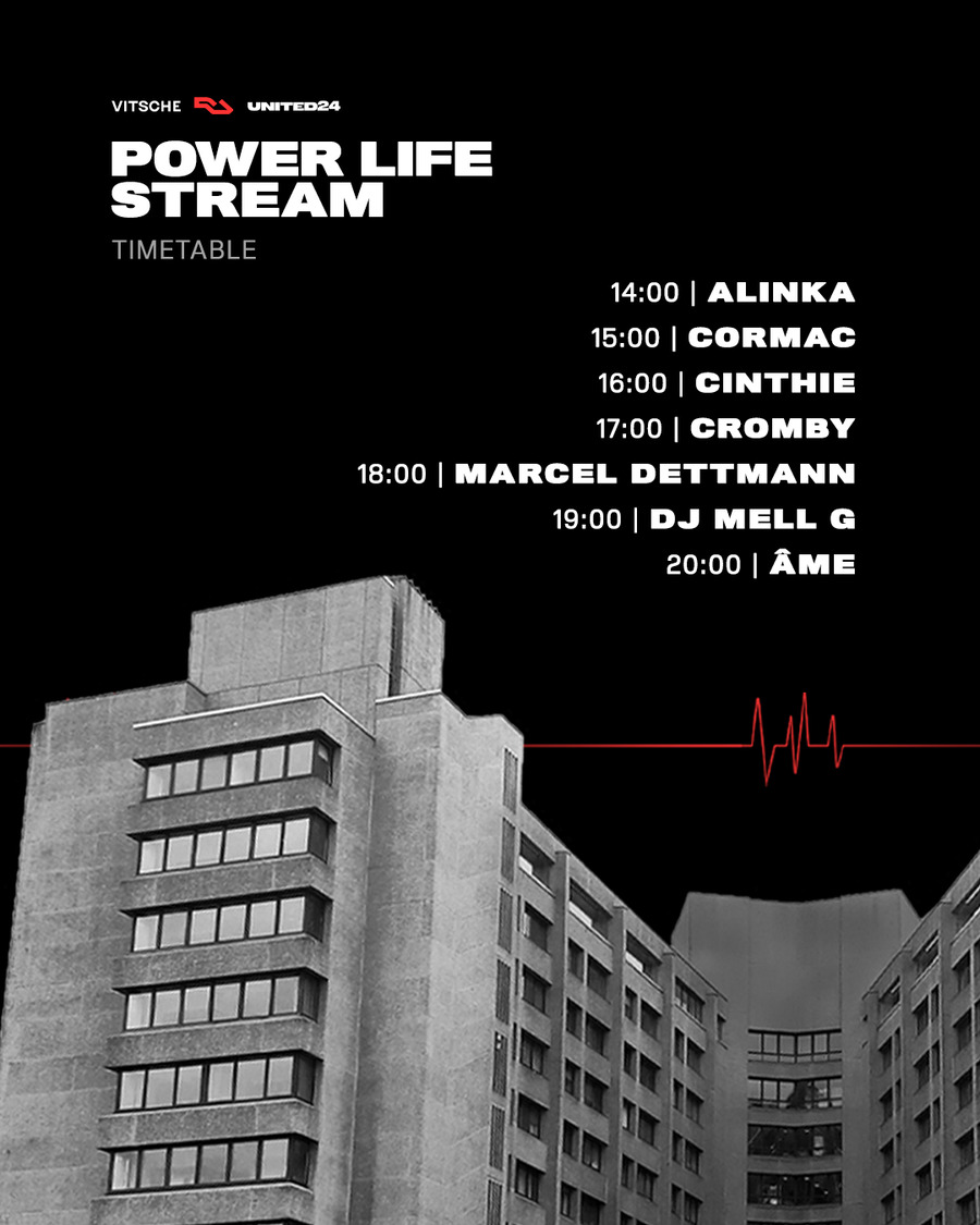 Tune in to the stream from 2 PM CET via the campaign link ‘’Power Life in Ukraine’’ and Social Media Channels of RA, Vice Germany, and United We Stream, and share it via social media to contribute to our united goal.